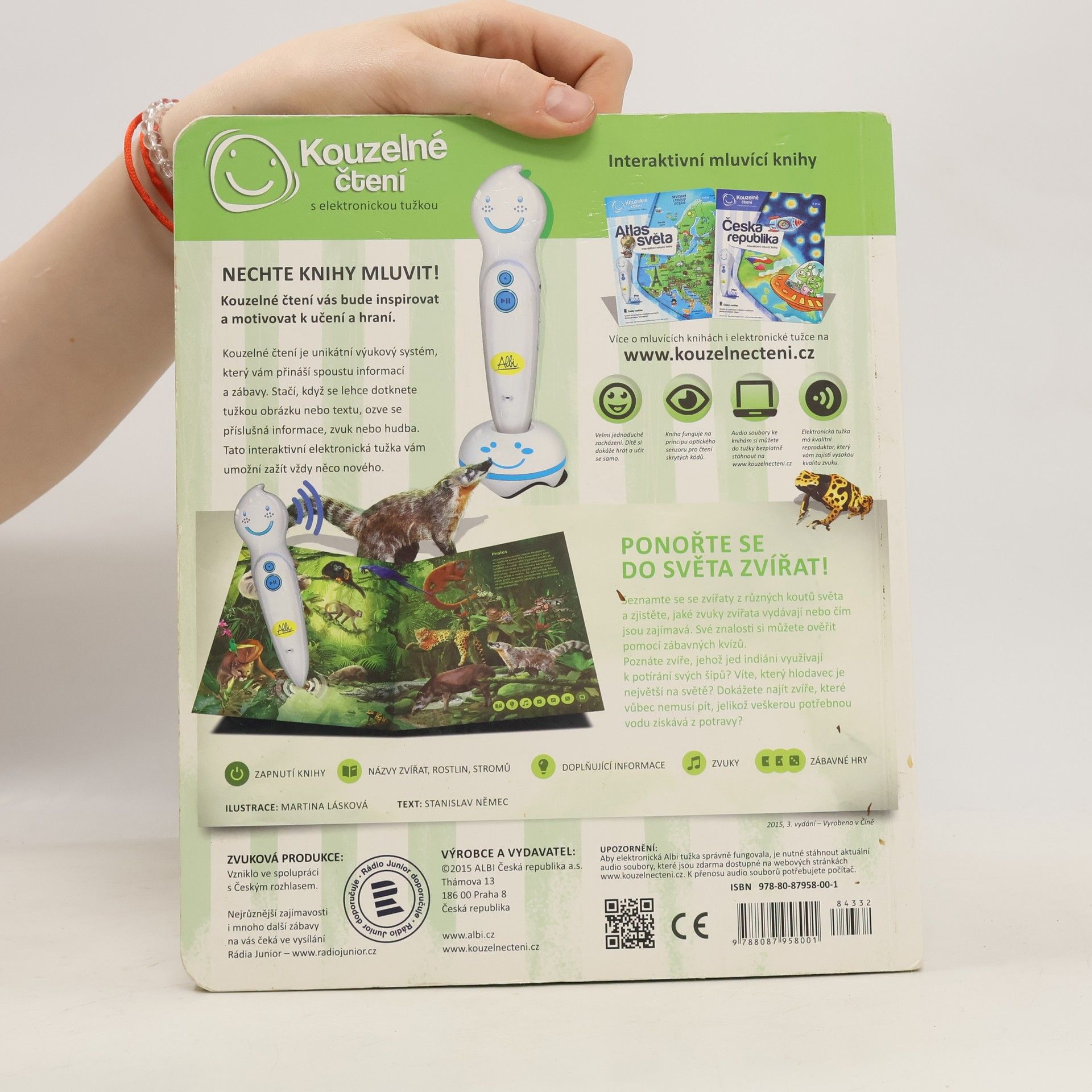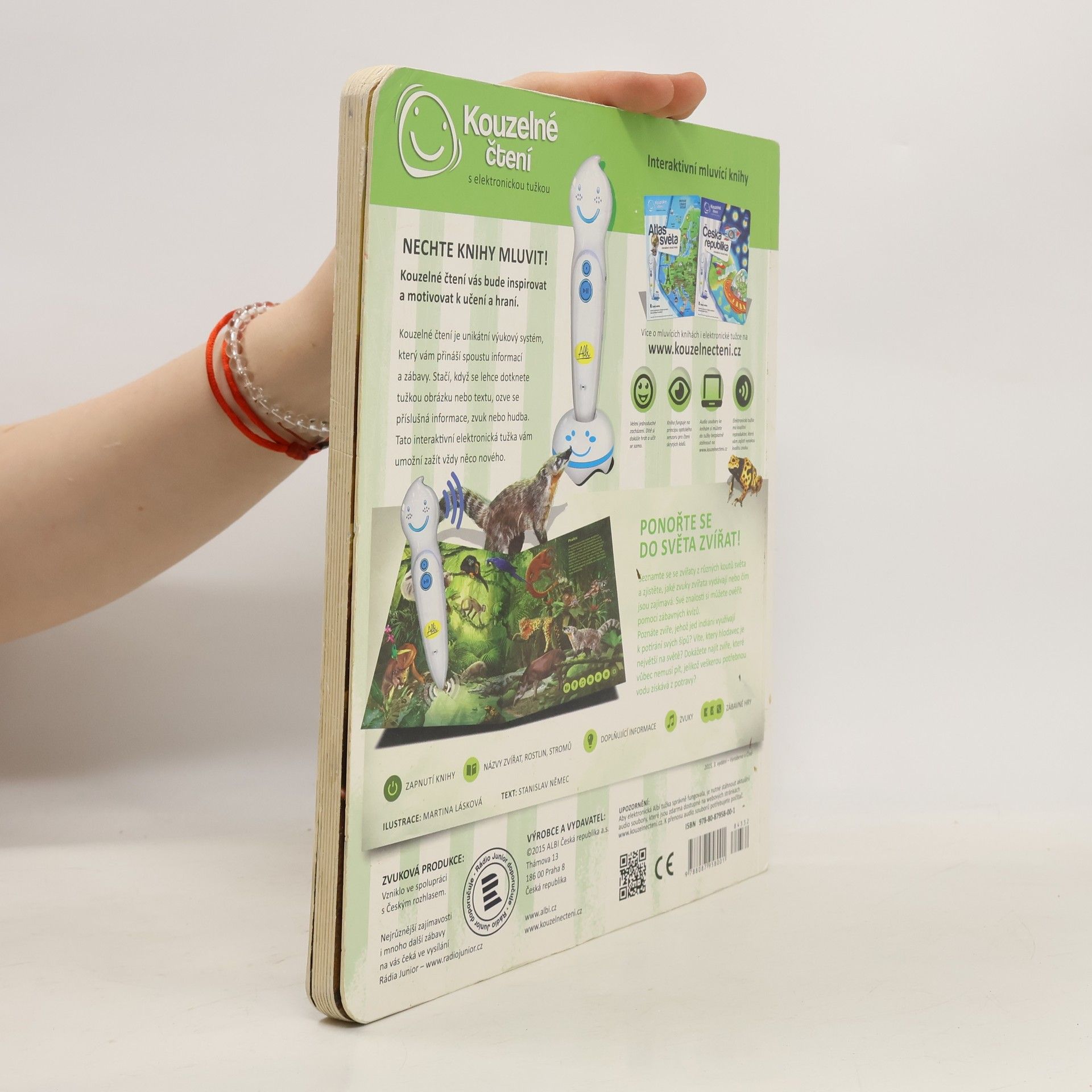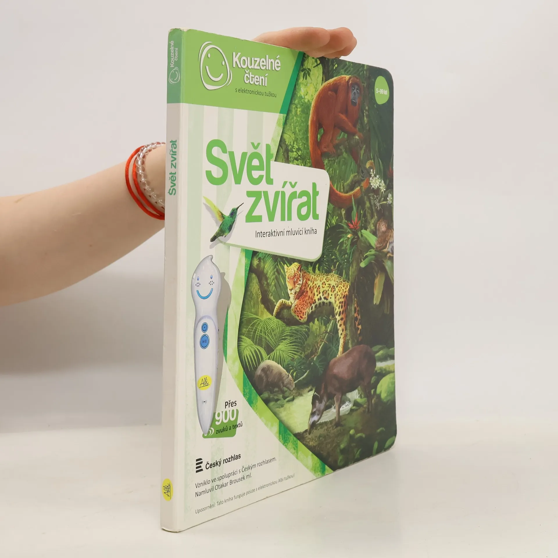 Ponořte se do světa zvířat! Seznamte se se zvířaty ze všech koutů světa a zjistěte, jaké zvuky vydávají, čím se živí nebo čím jsou jedinečná. Kniha vás tématicky provede osmi různými prostředími z naší planety, jako je les, savana, poušť, moře a další. Na každé straně se dozvíte, jaká zvířata v daném prostředí žijí, jak se jmenují, jaké zvuky vydávají a čím jsou zajímavá. Své znalosti si pak můžete ověřit pomocí zábavných kvízů, které jsou vždy rozděleny do tří kategorií: najdi zvíře podle názvu, najdi zvíře podle zvuku, najdi zvíře podle zajímavosti. Kniha je namluvena známým českým hercem Otakarem Brouskem ml. Kniha obsahuje přes 900 zvuků a textů. Kniha vznikla ve spolupráci s Českým rozhlasem.