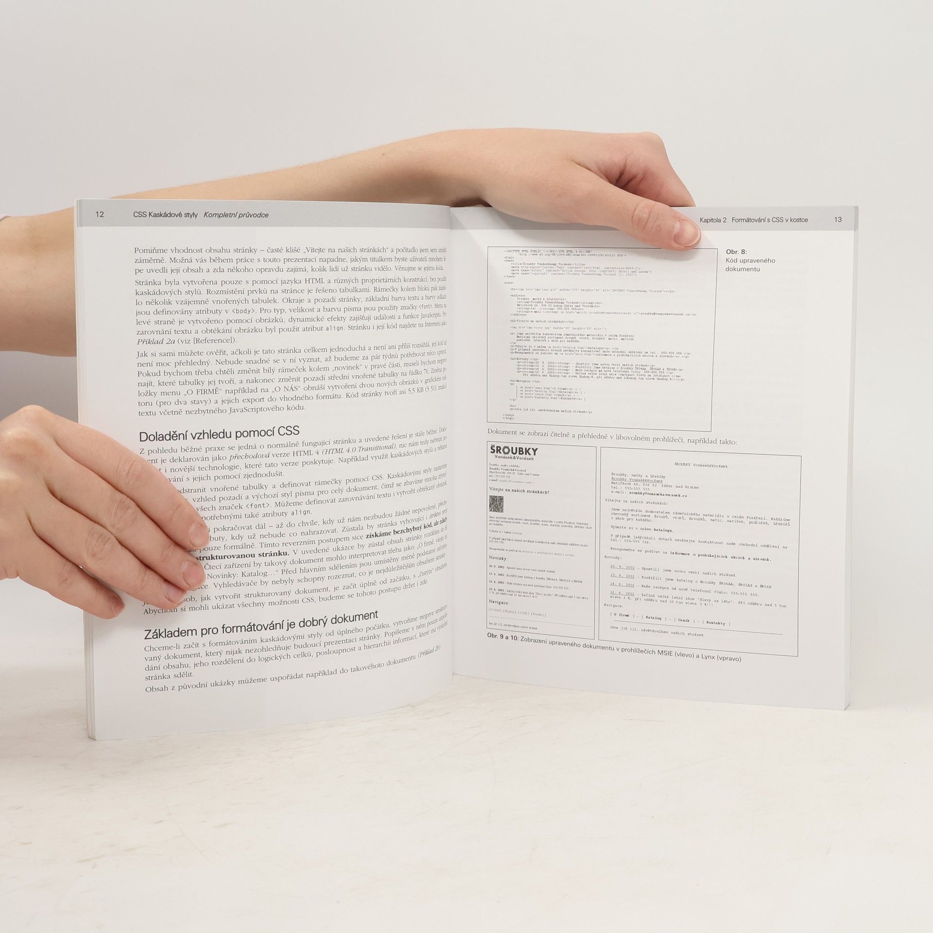 Jazyk CSS (tabulky kaskádových stylů, Cascading Style Sheets) umožňuje efektivně formátovat dokumenty, definovat způsob jejich prezentace, popisovat podobu webových stránek a styl jednotlivých prvků. Jeho obrovskou výhodou je, že přitom neovlivňuje obsah dokumentů samotných. Je ideální nadstavbou značkovacích jazyků HTML, XHTML nebo XML. Bez jeho znalosti se již tedy dnes neobejde žádný tvůrce webových stránek a aplikací. Kniha v pěti kapitolách ukazuje formátování s CSS, použití CSS v dokumentech, přehled funkcí a vlastností a kompatibilitu CSS v různých prohlížečích.