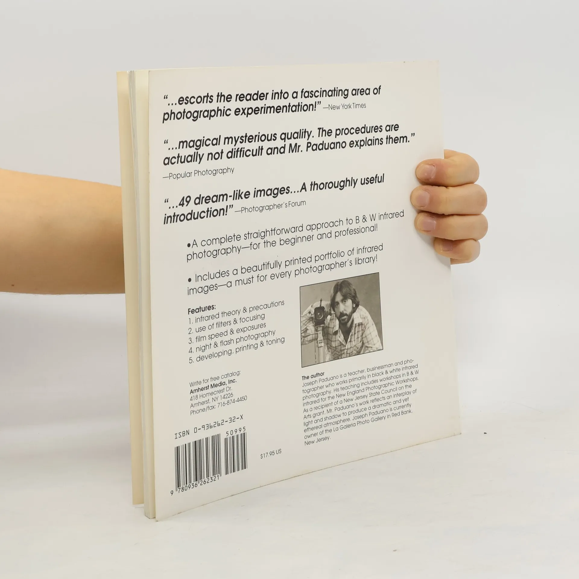 Enter the mystical world of infrared photography. Author Joseph Paduano covers the equipment and techniques one needs to produce stunning infrared images in bandw or color". . . . escorts the reader into a fascinating area of photographic experimentation".--NEW YORK TIMES.