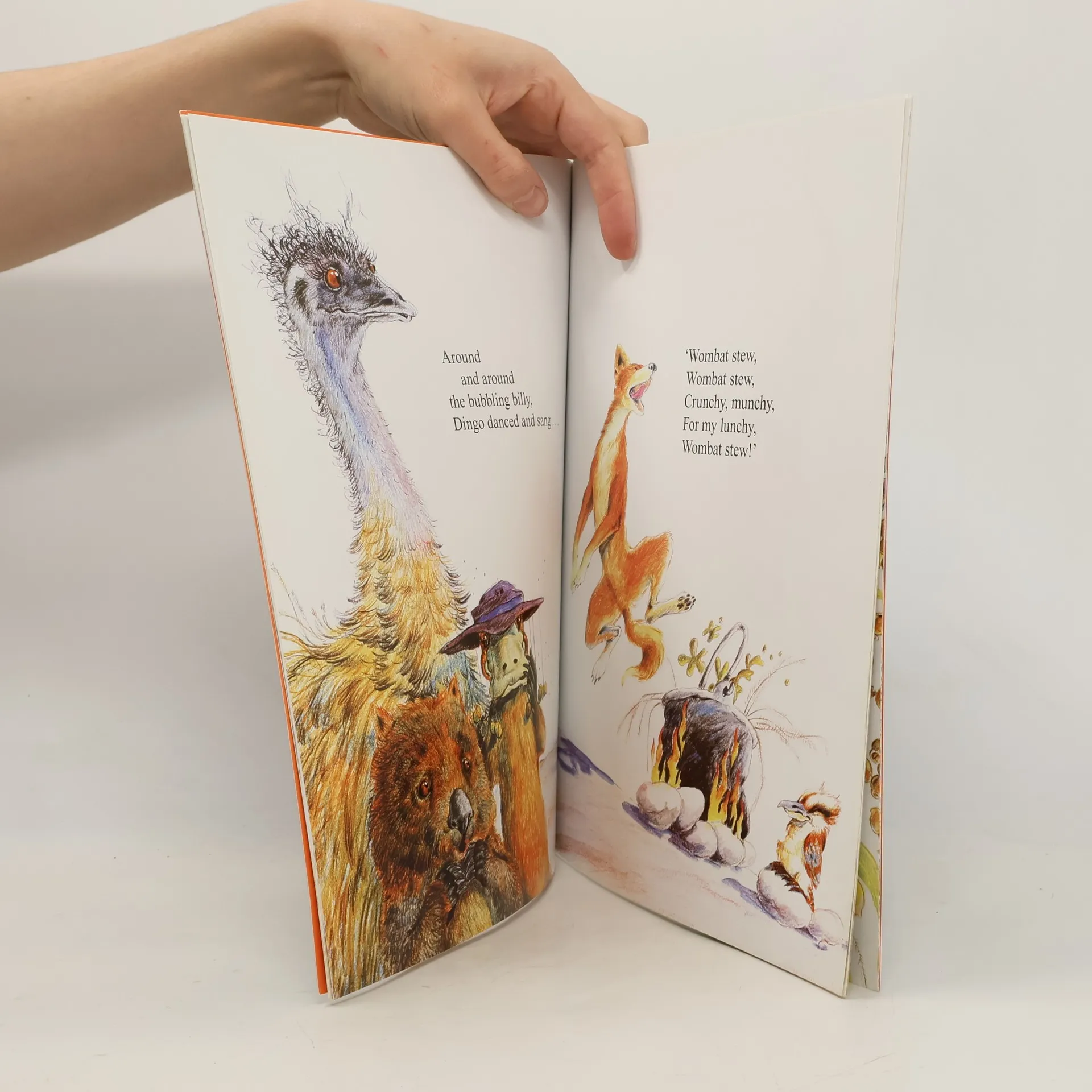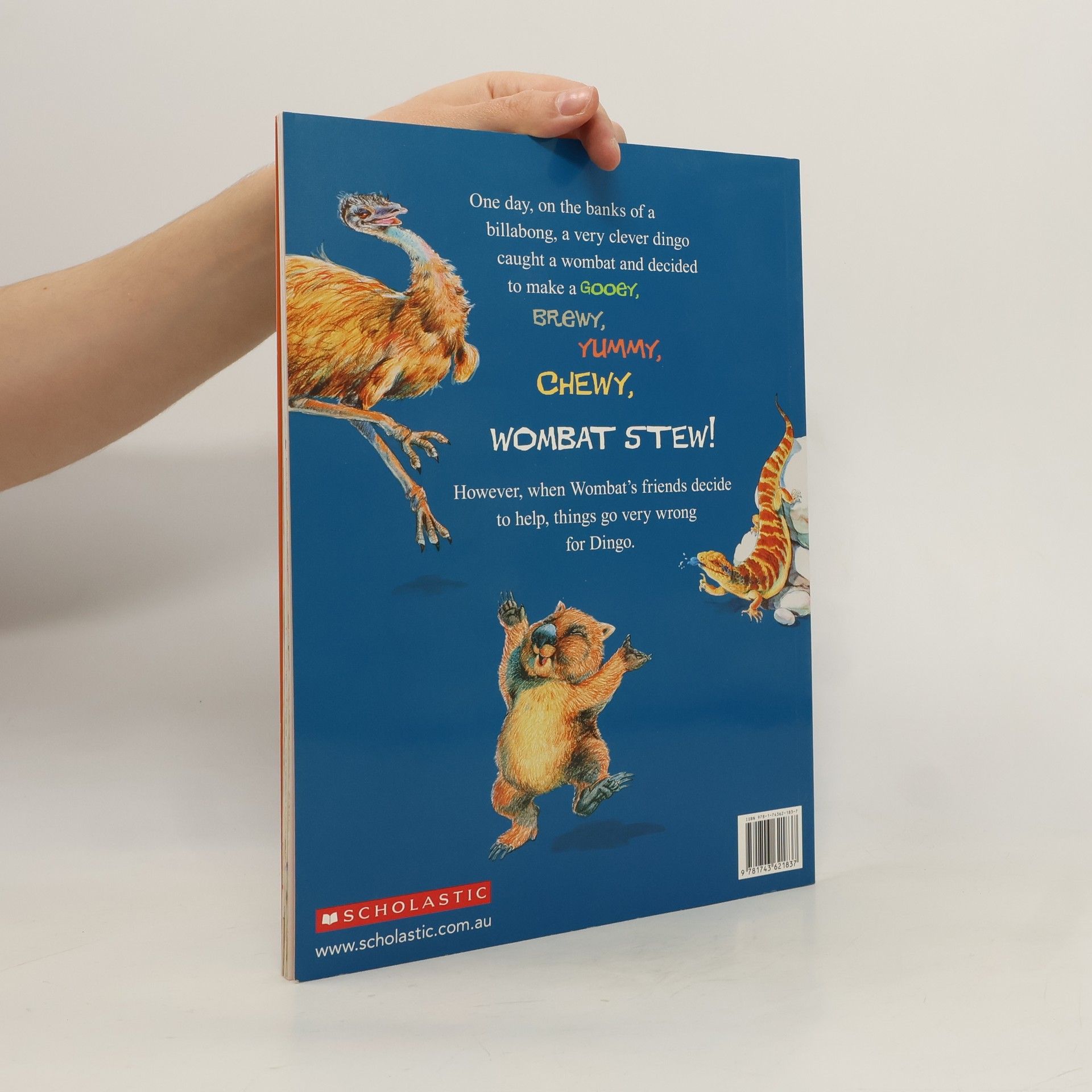 One day, on the banks of a billabong, a very clever dingo caught a wombat ... and decided to make... Wombat stew, Wombat stew, Gooey, brewy, Yummy, chewy, Wombat stew! In this classic Australian picture book, a dingo catches a wombat and wants to cook him in a stew. But all the other bush animals have a plan to save their friend. They trick the dingo into using mud, feathers, flies, bugs and gumnuts in his stew, and the result is something the dingo will never forget!