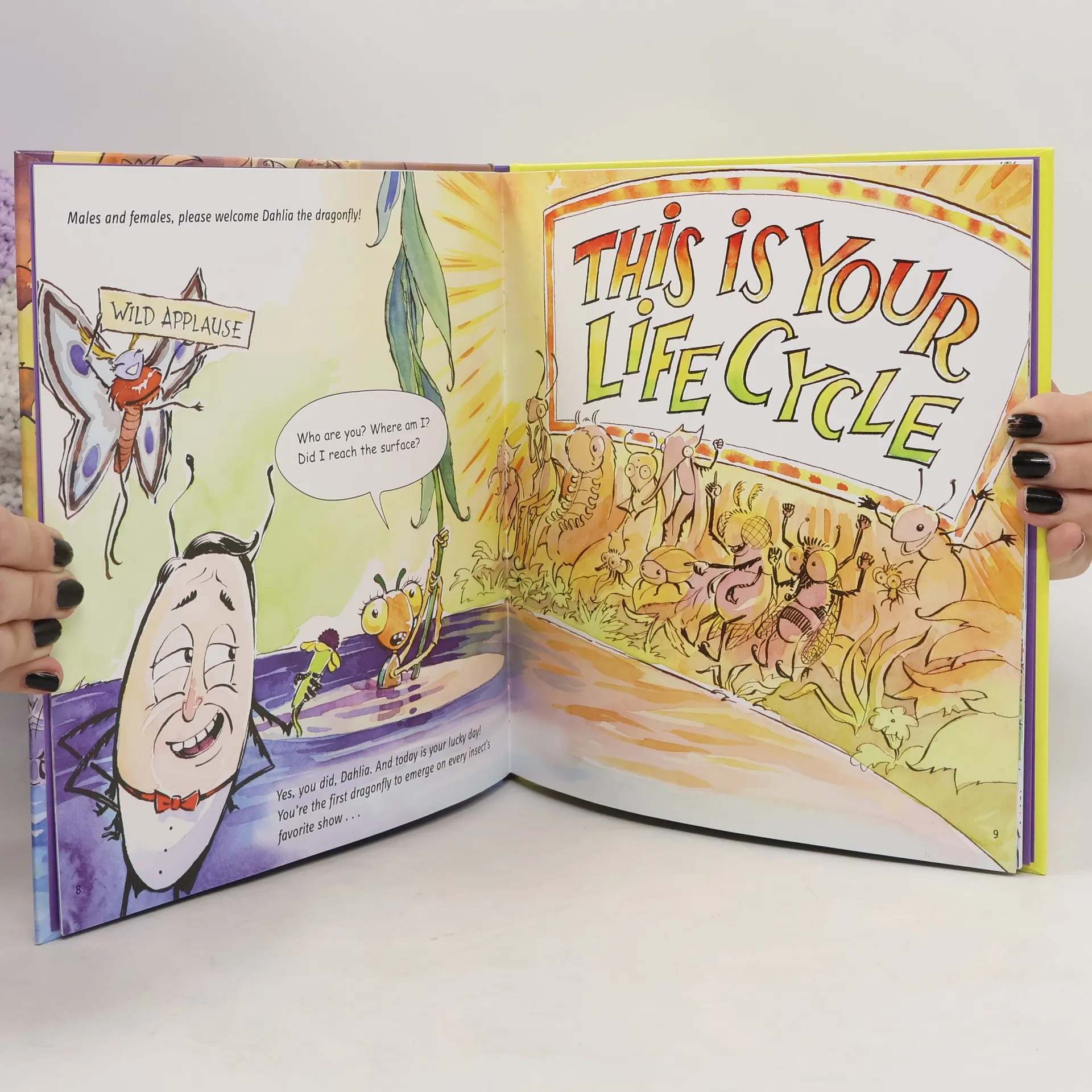 In this hilarious and inventive picture book, your host, Bob Beetle, takes special guest Dahlia Dragonfly down memory lane, highlighting the most influential creatures and experiences during her time as a nymph. You’ll meet three mystery guests, who’ll share their personal stories about Dahlia, and along the way you’ll find out about the different stages of a dragonfly’s life, the various predators they face, what they eat, and other amazing facts. And who knows what else might happen because, as always, we’ll be filming live in front of our all-insect studio audience!Filled with fun and humor, this book is as entertaining as it is informative. So please join us for an evening of laughter, thrills, and the thorax-warming memories that make every life cycle its own fascinating story.