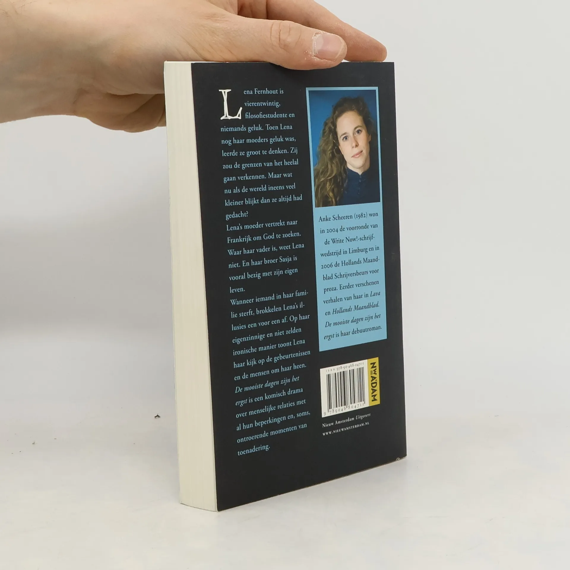 Als een kanonskogel kwam ze vorig jaar de literaire wereld Anke Scheeren. Haar debuutroman De mooiste dagen zijn het ergst werd lovend ontvangen, beleefde zeven drukken en werd genomineerd voor de Opzij Literatuurprijs en de Vrouw & Kultuur Debuutprijs 2010.Revu Wie het talent van Anke niet ziet, is het vak van literatuurcriticus niet waard.De roman gaat over Lena Fernhout, vierentwintig, filosofiestudente en niemands geluk. Wanneer iemand in haar familie sterft, brokkelen Lena's illusies een voor een af. De mooiste dagen zijn het ergst is een komisch drama over menselijke relaties met al hun beperkingen en, soms, ontroerende momenten van toenadering.