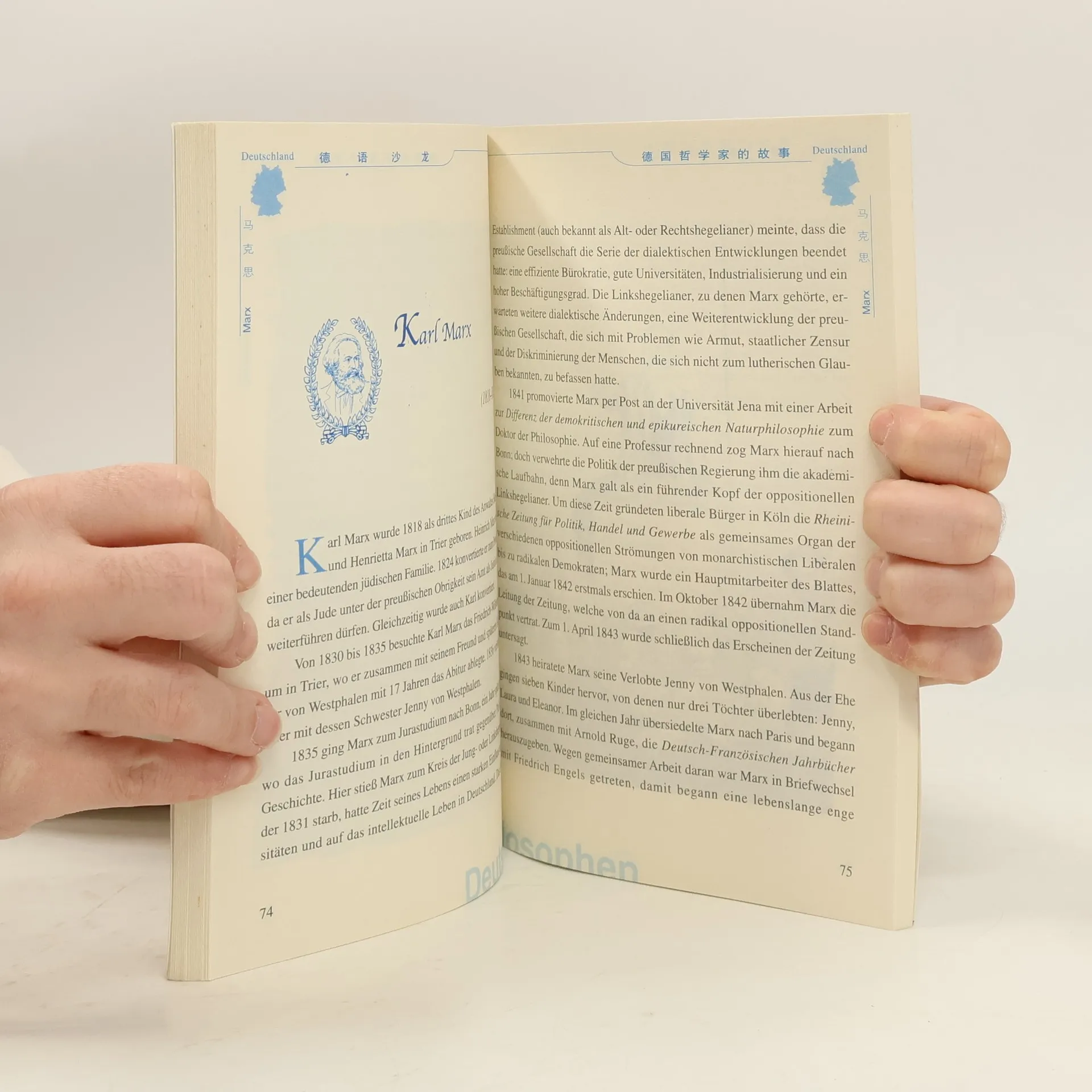 本書以中文、德文對照的形式,介紹了戈特弗里德‧威廉‧萊布尼茨、伊馬努埃爾‧康德、約翰‧戈特弗里德‧赫爾德、約翰‧戈特利布‧費希特、格奧爾格‧威廉‧弗里德里希‧黑格爾、阿圖爾‧叔本華、卡爾‧馬克思、弗里德里希‧尼采等德國十五位著名哲學家的生平事跡。