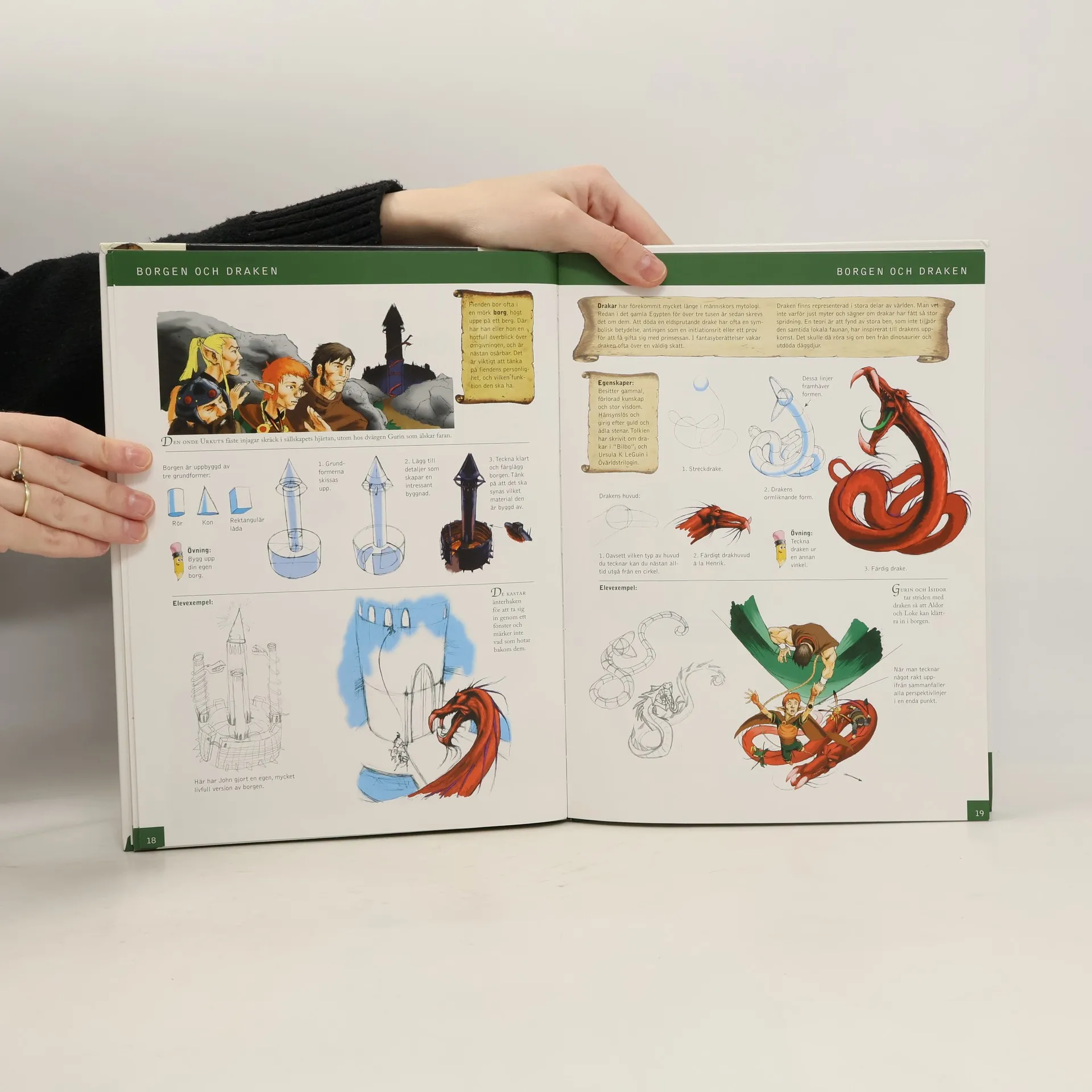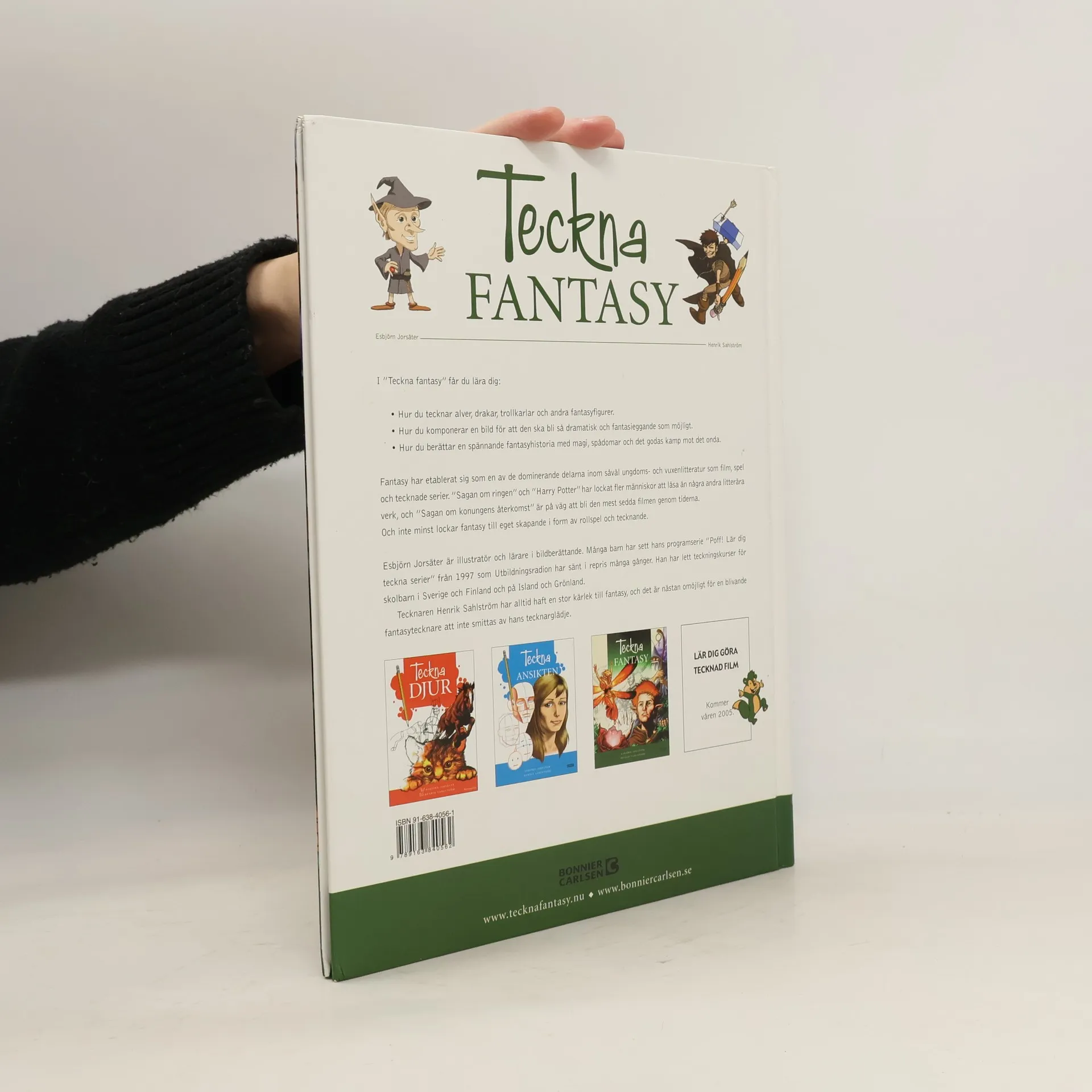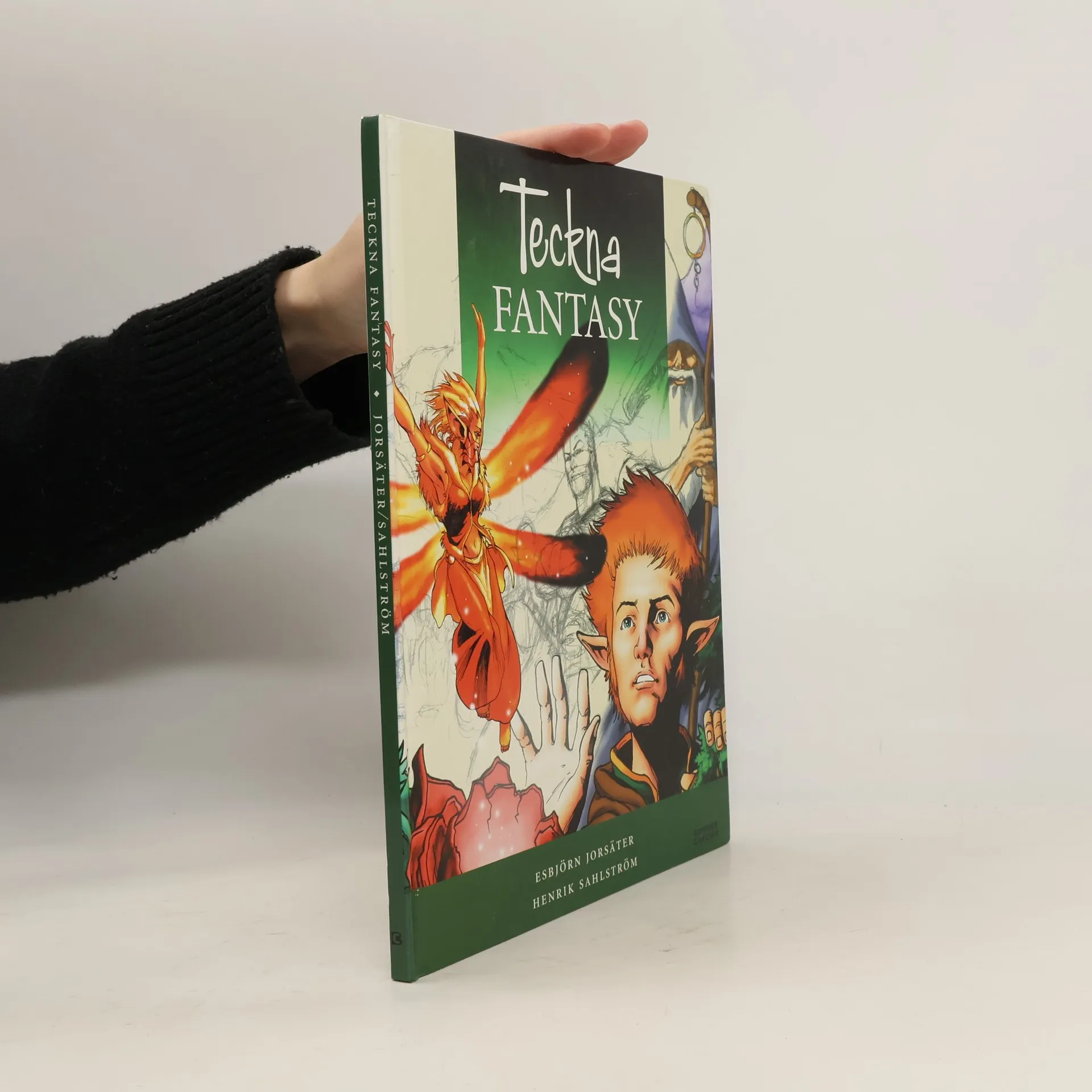 Mange barn og ungdom er interessert i fantasy i bøker, filmer og tegneserier. I denne boken kan du lese om hvordan man tegner alver, drager, trollmenn og andre fantasy-figurer. Videre viser boken hvordan man komponerer et bilde, og hvordan man setter dette sammen til å bli en spennende historie. Esbjörn Jorsäter er lærer og har stor erfaring i å lede kurs i tegning for barn og voksne. Tegneren Henrik Sahlström har illustrert boken. Gjennomillustrert i farger. Boken henvender seg til barn fra ca 12 år og oppover.