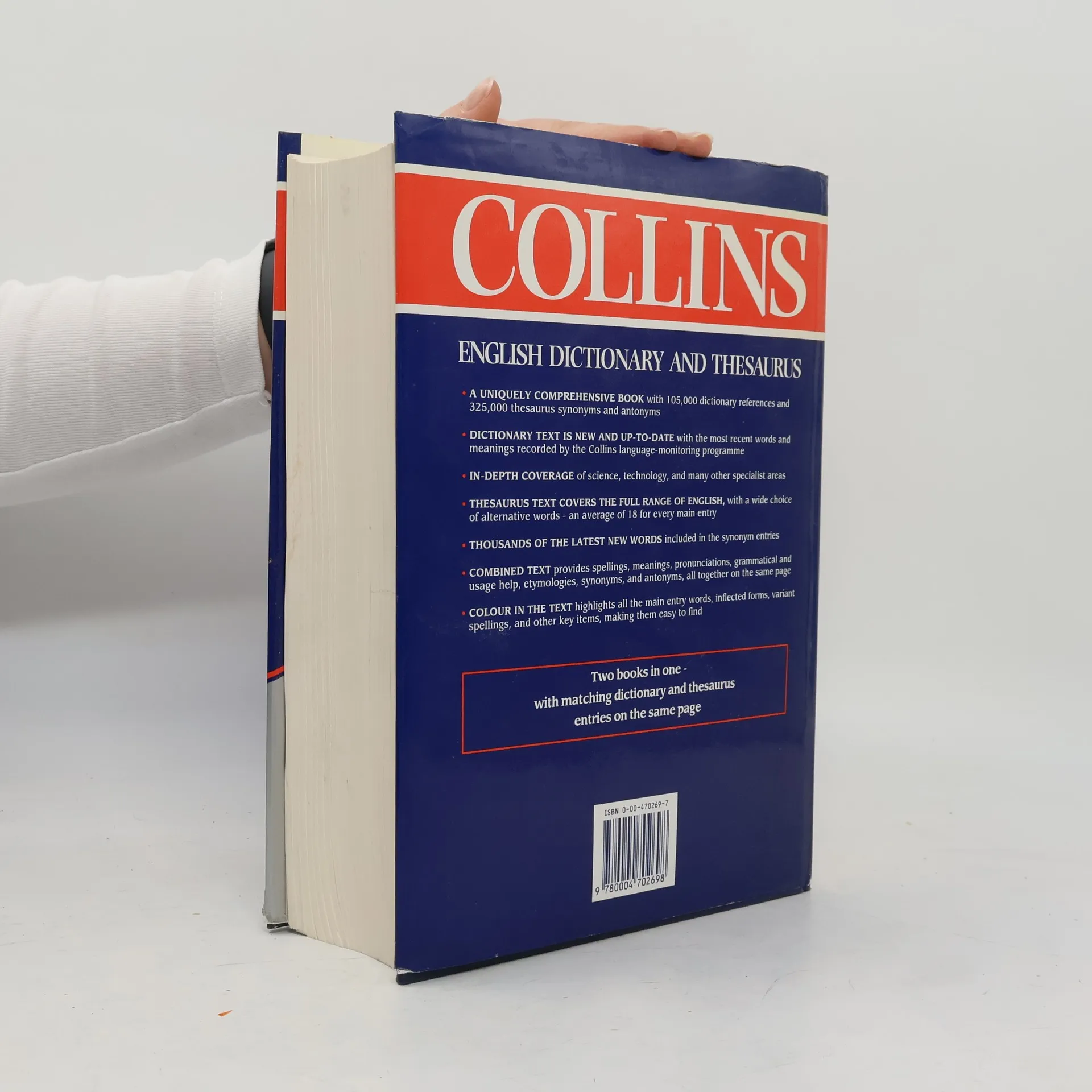 This thumb-indexed edition includes a general-purpose dictionary and a thesaurus in dictionary form, arranged so that the relevant material from each appears on the same page, an arrangement made possible by the use of computer data-handling. Meanings, spelling, pronunciation, usage and a wide range of words and phrases are instantly available. The dictionary in this volume is derived from the Collins English Dictionary while the thesaurus is derived from the New Collins Thesaurus.
