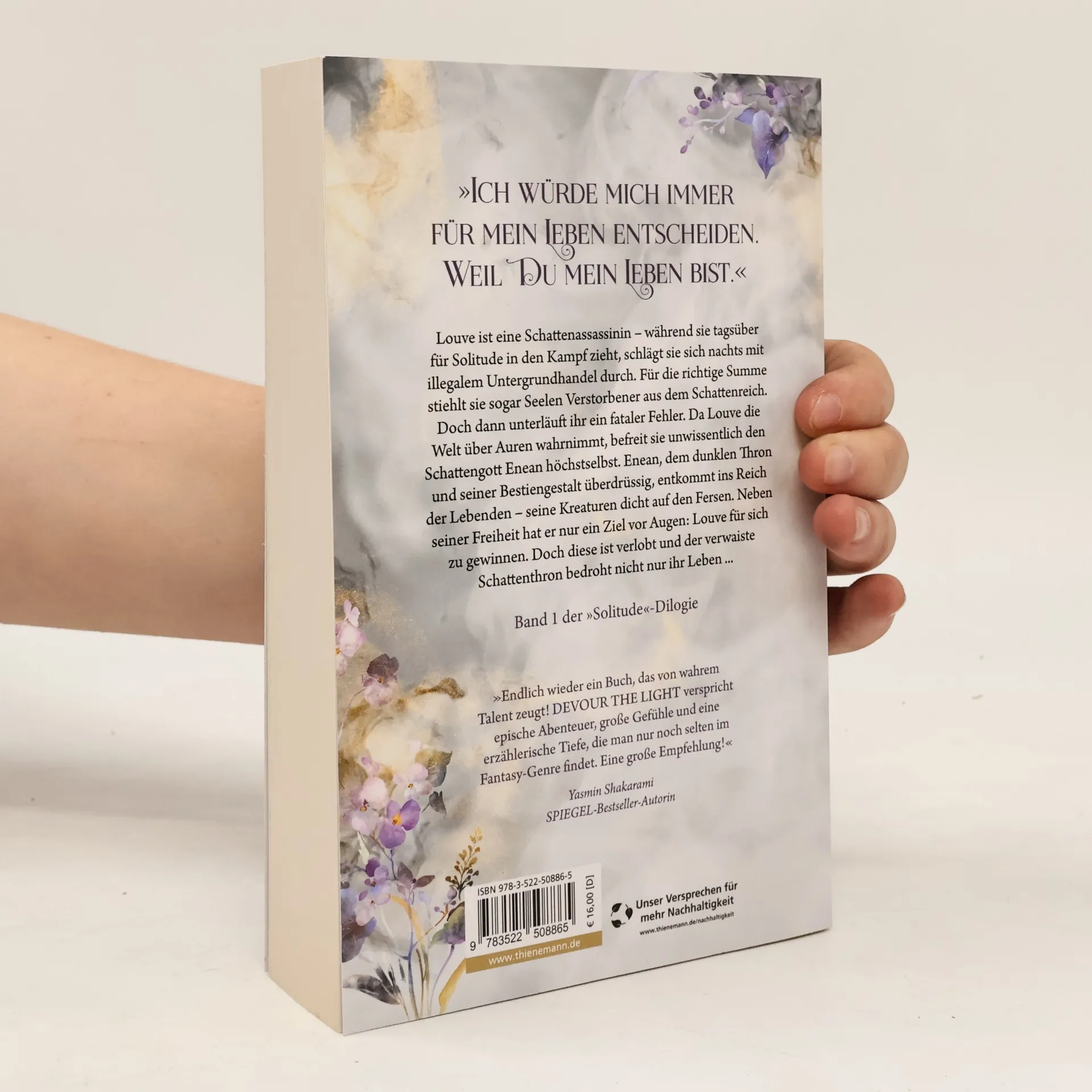 **Zwei Star-Crossed Lovers im Kampf zwischen den Welten** Louve ist eine Schattenassassinin - während sie tagsüber für Solitude in den Kampf zieht, schlägt sie sich nachts mit illegalem Untergrundhandel durch. Für die richtige Summe stiehlt sie sogar Seelen Verstorbener aus dem Schattenreich. Doch dann unterläuft ihr ein fataler Fehler. Da Louve die Welt nur über Auren wahrnimmt, befreit sie unwissentlich den Schattengott Enean höchstselbst. Enean, dem dunklen Thron und seiner Bestiengestalt überdrüssig, entkommt ins Reich der Lebenden – seine Kreaturen dicht auf den Fersen. Neben seiner Freiheit hat er nur ein Ziel vor Augen: Louve für sich zu gewinnen. Doch diese ist verlobt und der verwaiste Schattenthron bedroht nicht nur ihr Leben... High Fantasy vom Feinsten - eine Welt im ewigen Kampf zwischen Licht und Schatten . //Dies ist der erste Band der »Solitude«-Dilogie . Alle Romane der epischen New Adult Fantasy -Serie im Loomlight-Verlag: Devour the Light Unleash the Shadows (erscheint vrsl. im November 2025)