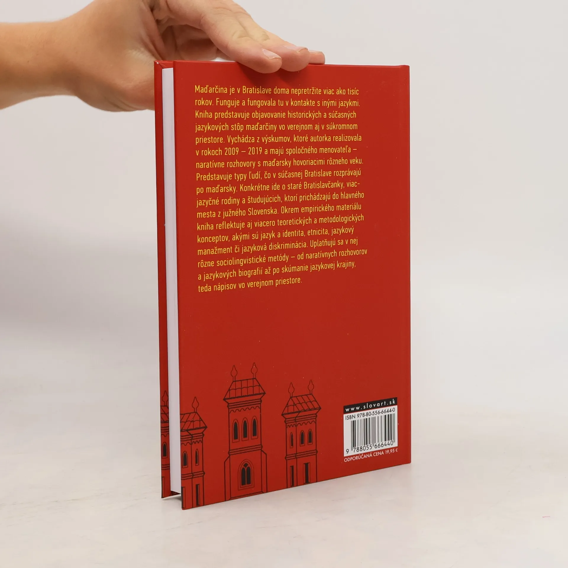 Maďarčina je v Bratislave doma nepretržite viac ako tisíc rokov. Funguje a fungovala tu v kontakte s inými jazykmi. Kniha predstavuje objavovanie historických a súčasných jazykových stôp maďarčiny vo verejnom aj súkromnom priestore. Vychádza z výskumov, ktoré autorka realizovala v rokoch 2009 - 2019, a majú spoločného menovateľa - naratívne rozhovory s maďarsky hovoriacimi rôzneho veku. Predstavuje typy ľudí, čo v súčasnej Bratislave hovoria po maďarsky. Konkrétne ide o staré Bratislavčanky, viacjazyčné rodiny a študujúcich, ktorí prichádzajú do hlavného mesta za štúdiom z južného Slovenska. Okrem empirického materiálu kniha reflektuje aj viacero teoretických a metodologických konceptov, akými sú jazyk a identita, etnicita, jazykový manažment či jazyková diskriminácia. Uplatňujú sa v nej rôzne sociolingvistické metódy - od naratívnych rozhovorov a jazykových biografií až po skúmanie jazykovej krajiny, teda nápisov vo verejnom priestore.