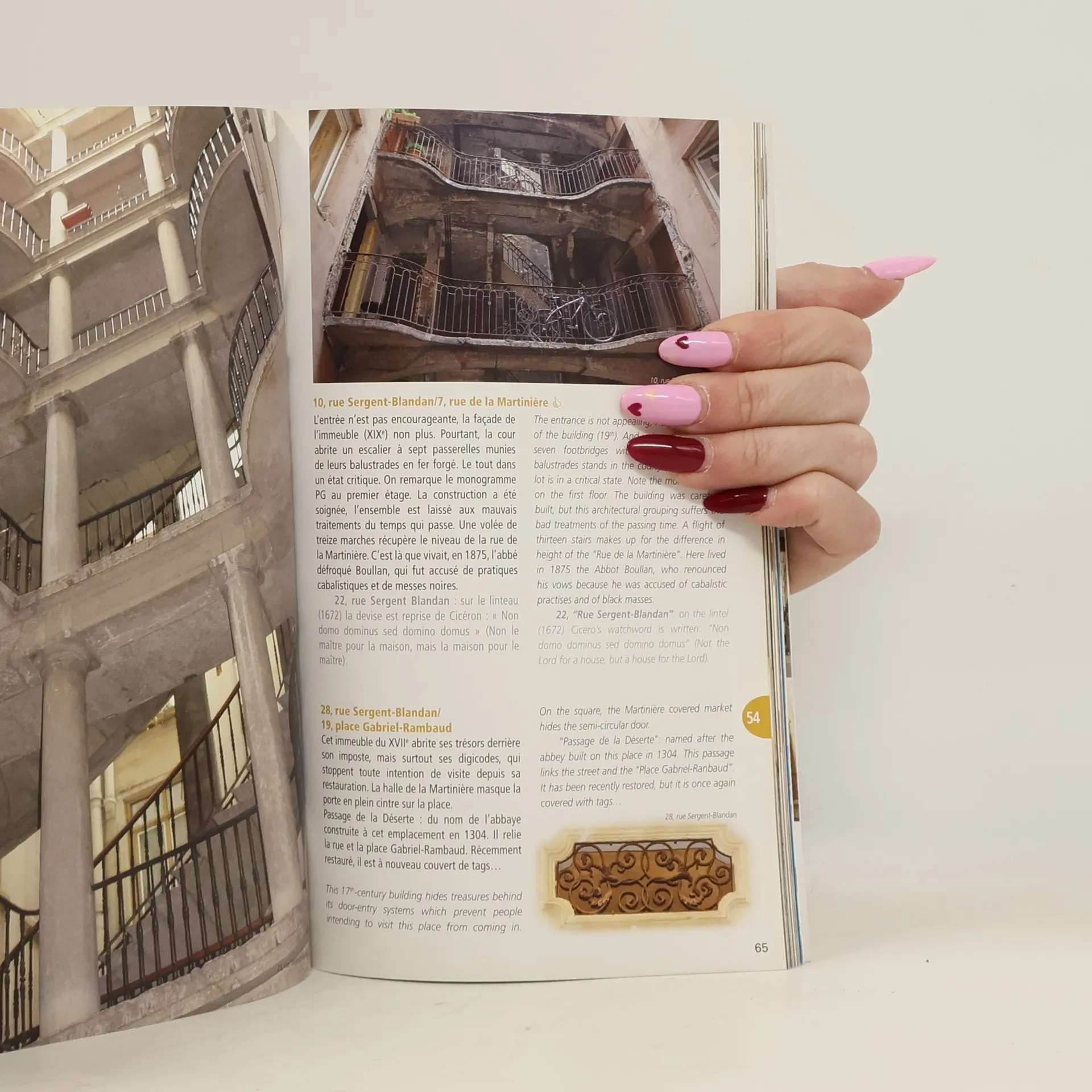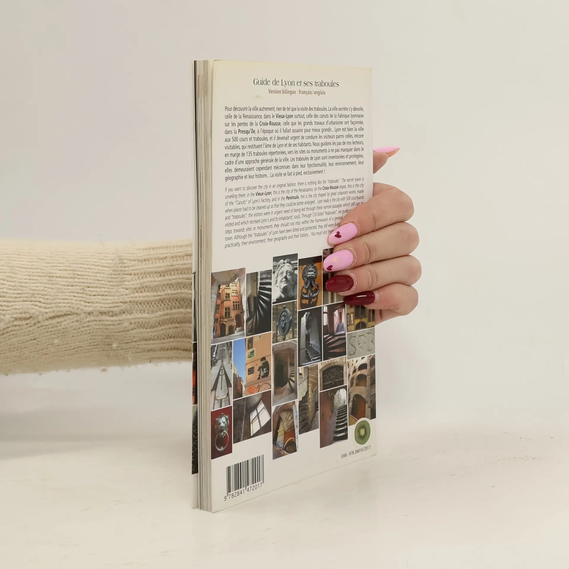 Pour découvrir la ville autrement, rien de tel que la visite des traboules. La ville secrète s'y dévoile, celle de la Renaissance, dans le Vieux-Lyon surtout, celle des canuts de la Fabrique lyonnaise sur les pentes de la Croix-Rousse, celle que les grands travaux d'urbanisme ont façonnée, dans la Presqu'île... Lyon est bien la ville aux 500 cours et traboules et il devenait urgent de conduire les visiteurs parmi celles, encore visitables, qui restituent l'âme de Lyon et de ses habitants. Nous guidons les pas de nos lecteurs, en marge de 135 traboules répertoriées, vers les sites ou monuments à ne pas manquer dans le cadre d'une approche générale de la ville. Les traboules de Lyon sont inventoriées et protégées, elles demeuraient cependant méconnues dans leur fonctionnalité, leur environnement, leur géographie et leur histoire... La visite se fait à pied, exclusivement !!