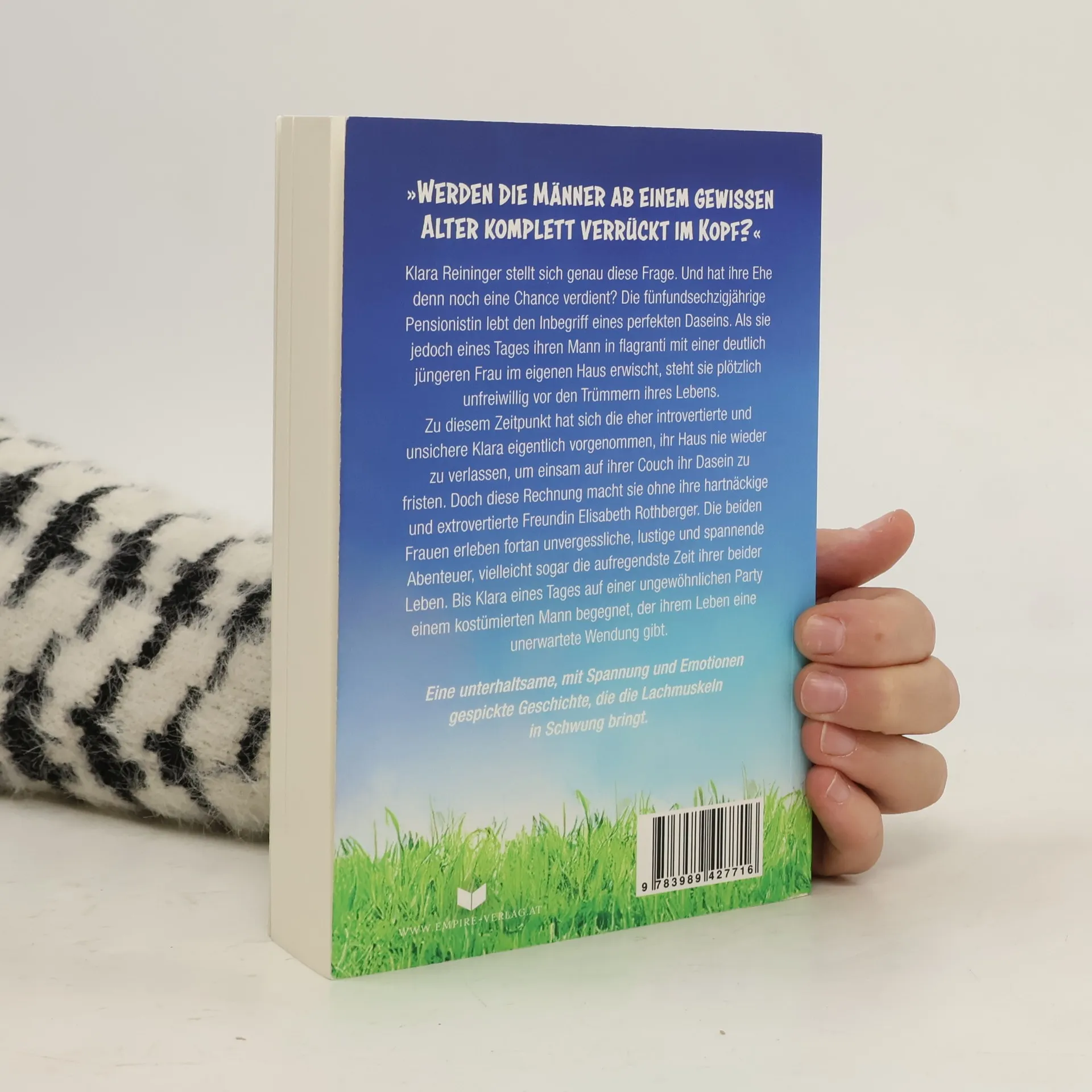 < »Werden die Männer ab einem gewissen Alter komplett verrückt im Kopf?« Klara Reininger stellt sich genau diese Frage. Und hat ihre Ehe denn noch eine Chance verdient? Die fünfundsechzigjährige Pensionistin lebt den Inbegriff eines perfekten Daseins. Als sie jedoch eines Tages ihren Mann in flagranti mit einer deutlich jüngeren Frau im eigenen Haus erwischt, steht sie plötzlich unfreiwillig vor den Trümmern ihres Lebens. Zu diesem Zeitpunkt hat sich die eher introvertierte und unsichere Klara eigentlich vorgenommen, ihr Haus nie wieder zu verlassen, um einsam auf ihrer Couch ihr Dasein zu fristen. Doch diese Rechnung macht sie ohne ihre hartnäckige und extrovertierte Freundin Elisabeth Rothberger. Die beiden Frauen erleben fortan unvergessliche, lustige und spannende Abenteuer, vielleicht sogar die aufregendste Zeit ihrer beider Leben. Bis Klara eines Tages auf einer ungewöhnlichen Party einem kostümierten Mann begegnet, der ihrem Leben eine unerwartete Wendung gibt. Eine unterhaltsame, mit Spannung und Emotionen gespickte Geschichte, die die Lachmuskeln in Schwung bringt.
