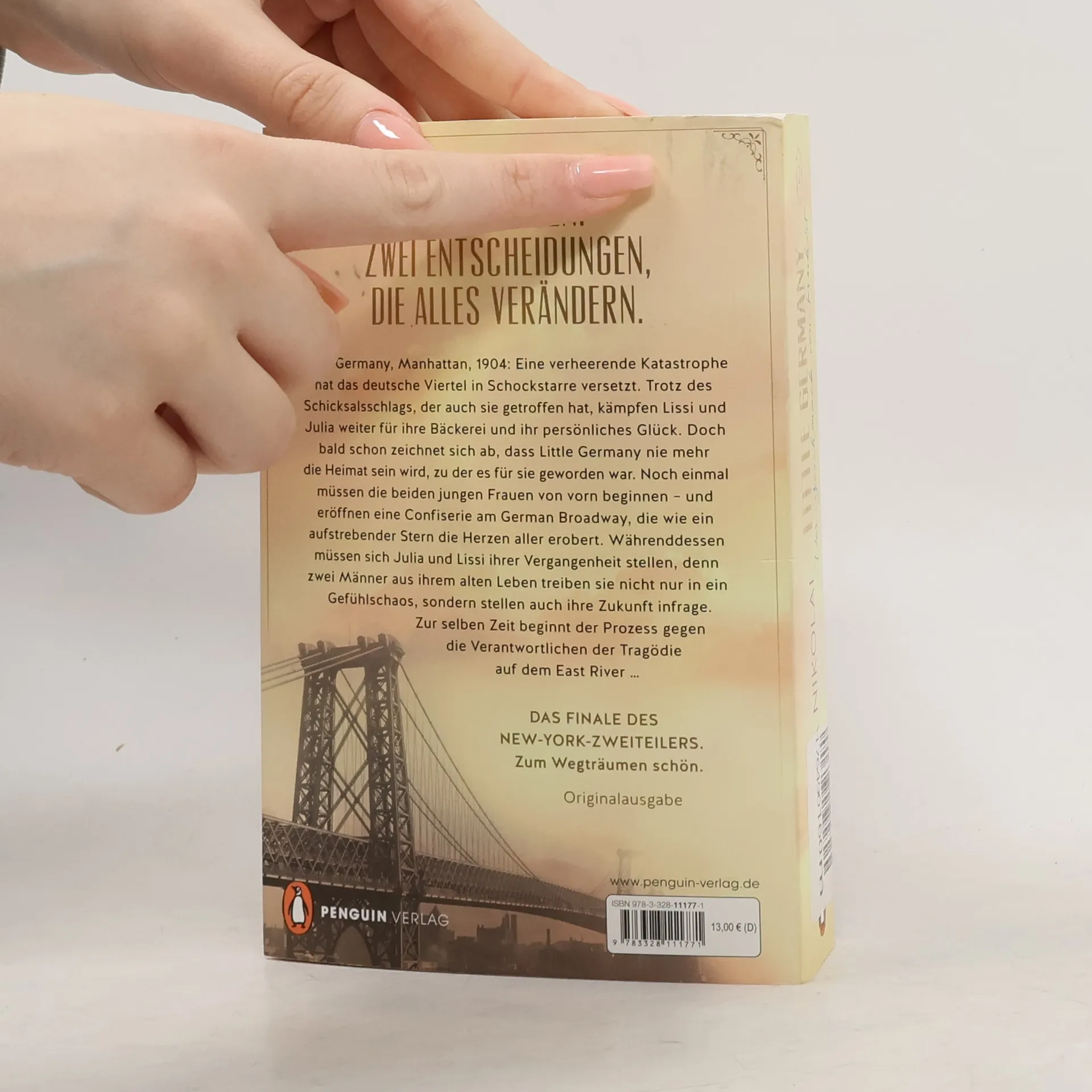 Das Schicksal zweier Frauen und zwei Entscheidungen, die alles verändern. Im Jahr 1904 ist Little Germany in Manhattan von einer verheerenden Katastrophe betroffen. Trotz des schweren Schicksalsschlags kämpfen Lissi und Julia um ihre Bäckerei und ihr persönliches Glück. Doch bald wird klar, dass Little Germany nie mehr die Heimat sein wird, die sie gekannt haben. Sie müssen neu anfangen und eröffnen »Lissi's Kleine Konditorei« auf der 86th Street in Yorkville. Die schwäbische Confiserie erobert schnell die Herzen der Menschen. Gleichzeitig müssen sich die beiden Frauen ihrer Vergangenheit stellen, da zwei Männer aus ihrem alten Leben nicht nur ein Gefühlschaos auslösen, sondern auch ihre Zukunft infrage stellen. Währenddessen beginnt der Prozess gegen die Verantwortlichen der Tragödie am East River. Maria Nikolai entführt die Leser*innen mit ihrer neuesten Auswanderersaga in das historische Little Germany und fängt den unwiderstehlichen Charme des frühen 20. Jahrhunderts ein. Ihre brillante Recherche bringt bezaubernde Details aus dem alten New York ans Licht und hinterlässt die Leser*innen in Staunen.