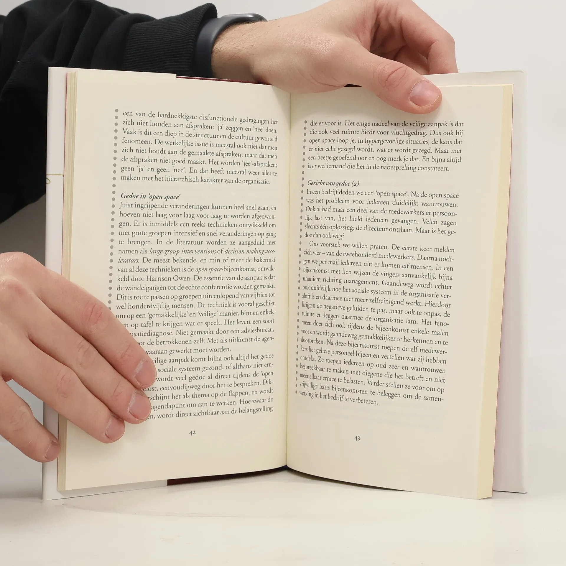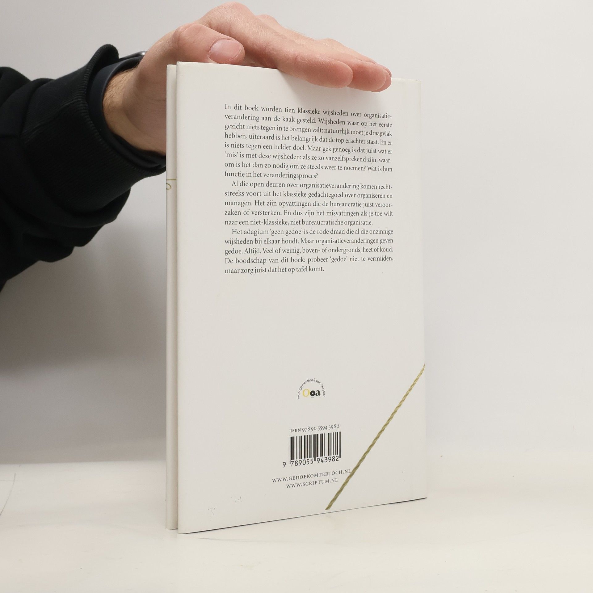 In dit boek worden tien klassieke wijsheden over organisatieverandering aan de kaak gesteld. Wijsheden waar op het eerste gezicht niets tegen in te brengen valt. Natuurlijk moet u draagvlak hebben, uiteraard is het belangrijk dat de top achter een verandering staat. En er is niets tegen een helder doel. Maar gek genoeg is dat juist wat er 'mis' is met deze wijsheden. Als ze zo vanzelfsprekend zijn, waarom is het dan zo nodig om ze steeds weer te noemen? Wat is hun functie in het veranderingsproces?Al die open deuren over organisatieverandering komen rechtstreeks voort uit het klassieke gedachtegoed over organiseren en managen. Het zijn opvattingen die de bureaucratie juist veroorzaken of versterken. En dus zijn het misvattingen als u toe wilt naar een niet-klassieke, niet bureaucratische organisatie.Het adagium 'geen gedoe' is de rode draad die al die onzinnige wijsheden bij elkaar houdt. Maar organisatieveranderingen geven gedoe. Altijd. Veel of weinig, boven- of ondergronds, heet of koud. De boodschap van dit boek: probeer 'gedoe' niet te vermijden, maar zorg juist dat het op tafel komt.