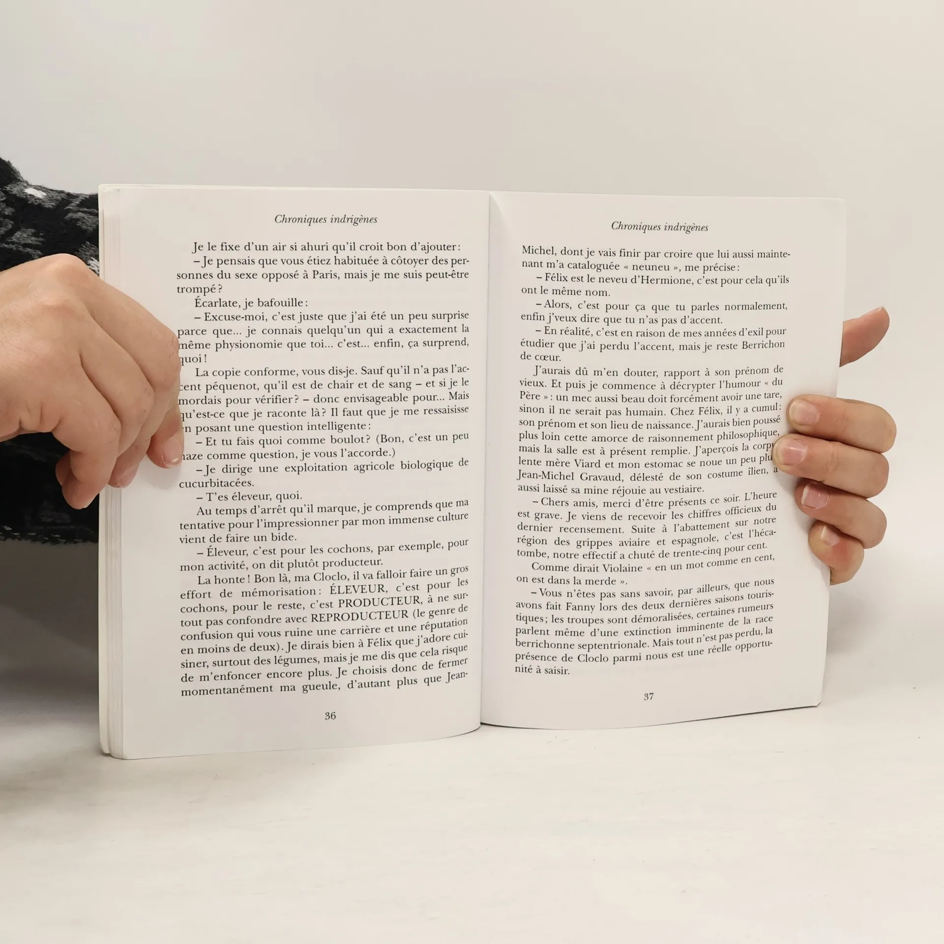 Clothilde Benoît est une Parisienne pur jus. Autant dire que pour cette Bobo (Bourgeoise Bohème), franchir la porte d'Italie est une véritable expédition vers des terres inconnues et sauvages. C'est pourtant ce que lui propose un jour la chaîne de Télévision pour laquelle elle travaille. En effet, cette citadine, qui n'a que de vagues notions du monde rural, doit être la vedette d'une émission de télé réalité à mi-chemin entre... La ferme célébrités et Koh Lanta. Immersion totale dans un village du Berry et véritable choc des cultures ! Mais aussi une aubaine, un mystérieux émissaire céleste l'ayant chargée d'une mission délicate: convaincre ses pairs citadins que le Berry est la vraie terre promise. C'est cette autre façon d'appréhender la vie que donne à voir Muriel Rojas Zamudio, à travers les découvertes ébahies de son héroïne. Chroniques Indrigènes, dans un style détonant et rythmé, nous entraîne dans une aventure très actuelle, bourrée d'humour et remplie de références à des mondes qui cohabitent sans vraiment se connaître, sinon par clichés interposés. Un excellent moment de détente à faire profiter à tous!