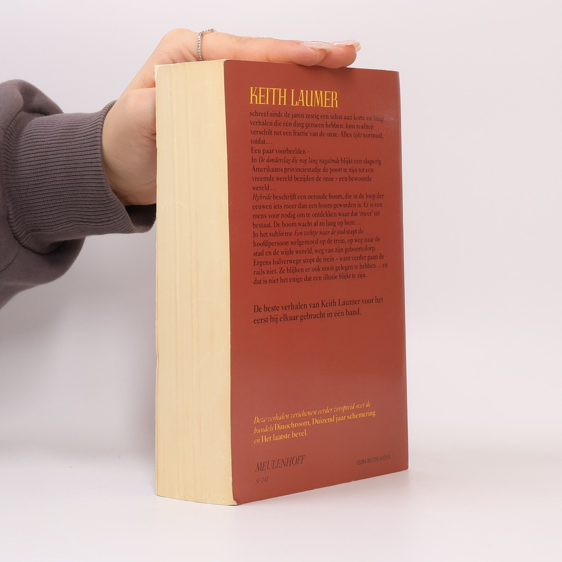 Bevat 15 verhalen, eerder verschenen in andere bundels:1. De andere hemel (Oorspr. The other sky, 1964)2. Voor de duivel niet (Oorspr. The devil you don't, 1970)3. Buitentijds (Oorspr. Mind out of time, 1968)4. De tijdrovers (Oorspr. The thime thieves, 1963)Bovenstaande 4 verhalen zijn eerder gepubliceerd in "Duizend jaar schemering" (1975)5. Hybride (Oorspr. Hybrid, 1961)6. Eindigen als held (Oorspr. End as a hero, 1963)7. De donderslag die nog lang nagalmde (Oorspr. The long remembered thunder, 1963)8. Dinochroom (Oorspr. Dinochrome, 1960)9. Cocon (Oorspr. Cocoon, 1962)10. Een tochtje naar de stad (Oorspr. A trip to the city, 1962)Bovenstaande 6 verhalen zijn in 1973 gepubliceerd in de bundel "Dinochroom"11. Aan de vooravond van de eeuwigheid (Oorspr. The day before forever, 1967)12. Oorlogsrelikwie (Oorspr. A relic of war, 1969)13. De oorlog tegen de Yukks (Oorspr. The war with the Yukks, 1965)14. Het laatste bevel (Oorspr. The last command, 1967)15. De nacht dat de trollen losbraken (Oorspr. The night of the trolls, 1963)De laatste 5 verhalen verschenen eerder in de bundel "Het laatste bevel" (1977).