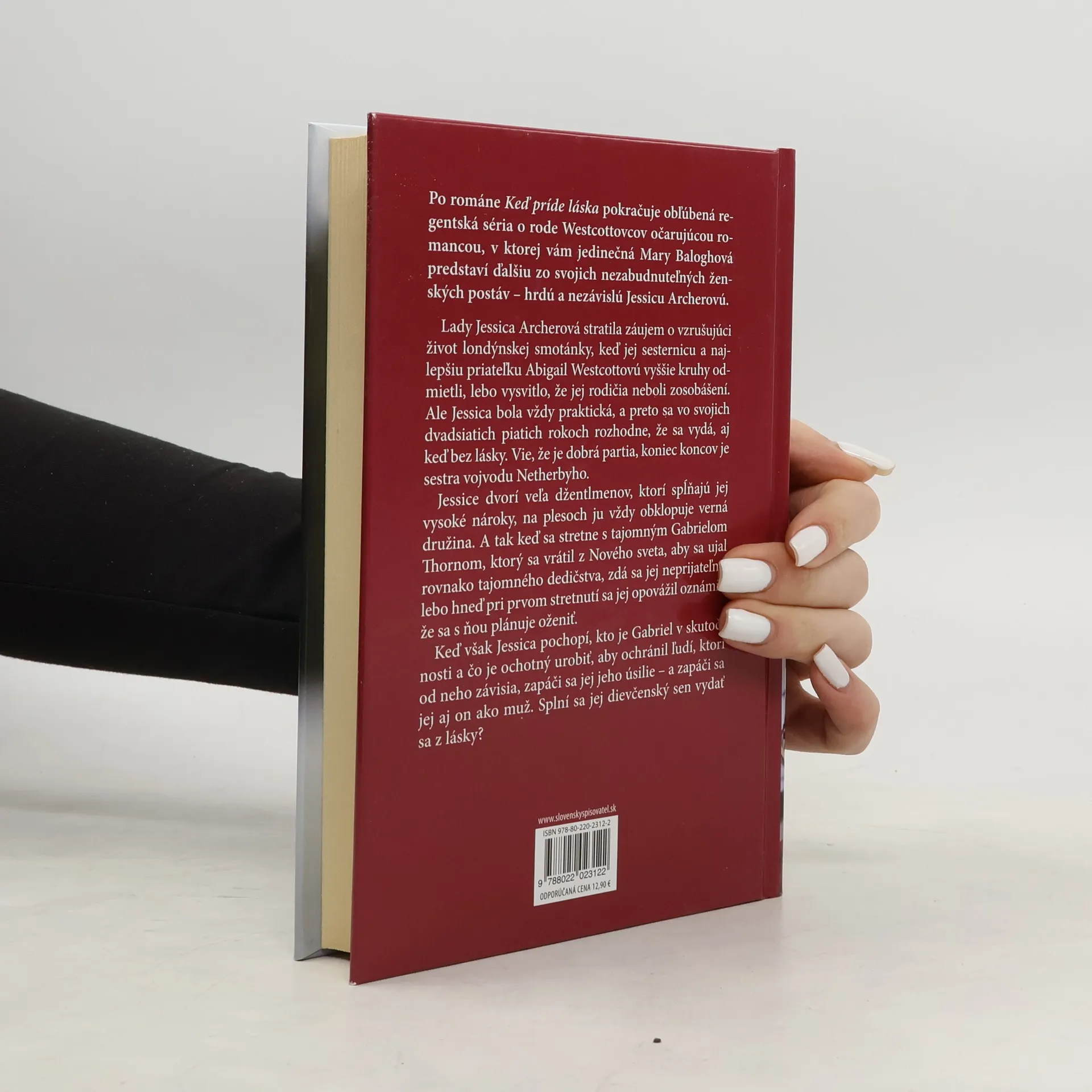 Po románe Keď príde láska pokračuje obľúbená regentská séria o rode Westcottovcov očarujúcou romancou, v ktorej vám jedinečná Mary Baloghová predstaví ďalšiu zo svojich nezabudnuteľných ženských postáv – hrdú a nezávislú Jessicu Archerovú. Lady Jessica Archerová stratila záujem o vzrušujúci život londýnskej smotánky, keď jej sesternicu a najlepšiu priateľku Abigail Westcottovú vyššie kruhy odmietli, lebo vysvitlo, že jej rodičia neboli zosobášení. Ale Jessica bola vždy praktická, a preto sa vo svojich dvadsiatich piatich rokoch rozhodne, že sa vydá, aj keď bez lásky. Vie, že je dobrá partia, koniec koncov je sestra vojvodu Netherbyho. Jessice dvorí veľa džentlmenov, ktorí spĺňajú jej vysoké nároky, na plesoch ju vždy obklopuje verná družina. A tak keď sa stretne s tajomným Gabrielom Thornom, ktorý sa vrátil z Nového sveta, aby sa ujal rovnako tajomného dedičstva, zdá sa jej neprijateľný, lebo hneď pri prvom stretnutí sa jej opovážil oznámiť, že sa s ňou plánuje oženiť. Keď však Jessica pochopí, kto je Gabriel v skutočnosti a čo je ochotný urobiť, aby ochránil ľudí, ktorí od neho závisia, zapáči sa jej jeho úsilie – a zapáči sa jej aj on ako muž. Splní sa jej dievčenský sen vydať sa z lásky?
