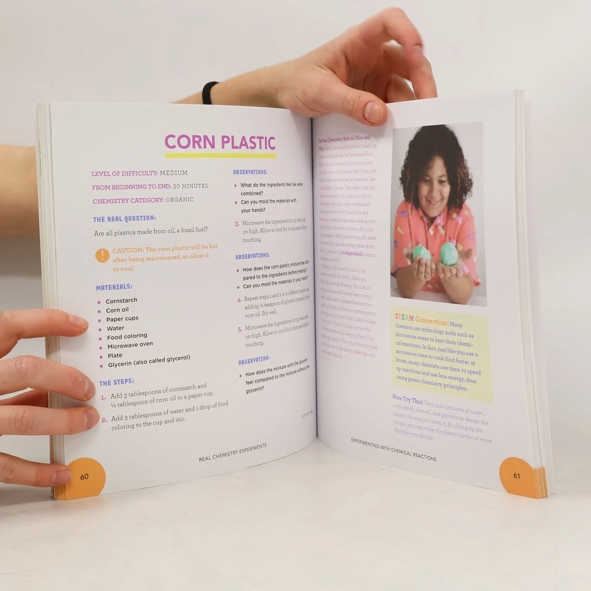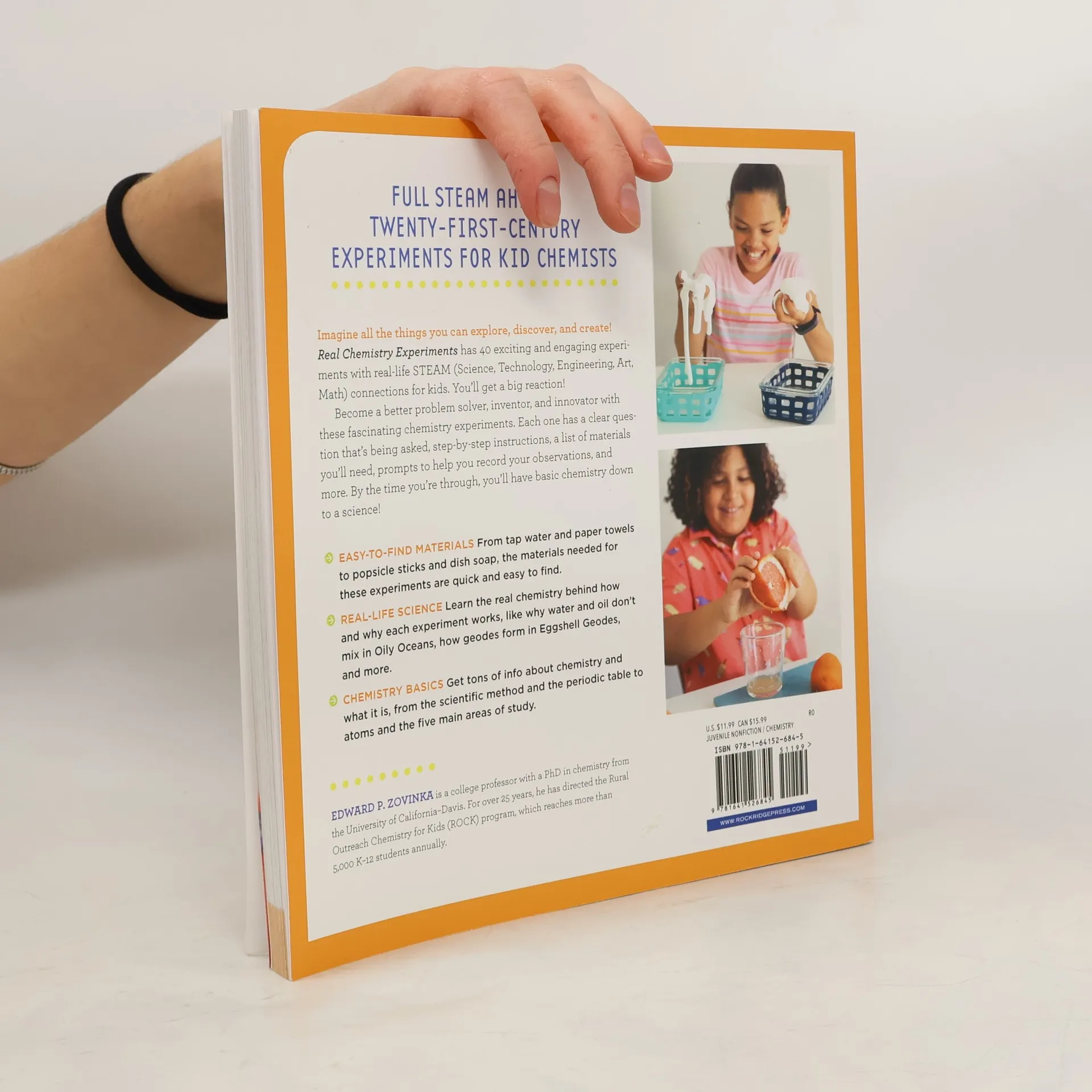 <strong>Full STEAM ahead!--21st-century chemistry for kids</strong> Chemistry for kids can be so much fun! <em>Real Chemistry Experiments</em> has 40 exciting and engaging experiments with a real-life STEAM (Science, Technology, Engineering, Art, Math) connection for kids. Become a better problem-solver, inventor, and innovator with these fascinating chemistry experiments. Each one has a clear purpose or question that's being asked, step-by-step instructions, a list of materials you'll need, questions to help you record your observations, and more. By the time you're through, you'll have chemistry for kids down to a science! This book of chemistry for kids includes: <strong>Easy-to-find materials</strong>--From tap water and paper towels, to popsicle sticks and dish soap, the materials needed for these experiments are quick and easy to find. <strong>Real-life science</strong>--Learn the real chemistry behind how and why each experiment works, like why water and oil don't mix in Oily Oceans, how geodes form in Eggshell Geodes, and more. <strong>Chemistry basics</strong>--Get tons of info about chemistry and what it is, from the scientific method and the Periodic Table, to atoms and the five main areas of study. Imagine all the things you can learn, create, and discover in this colorful book about chemistry for kids--the sky's the limit!