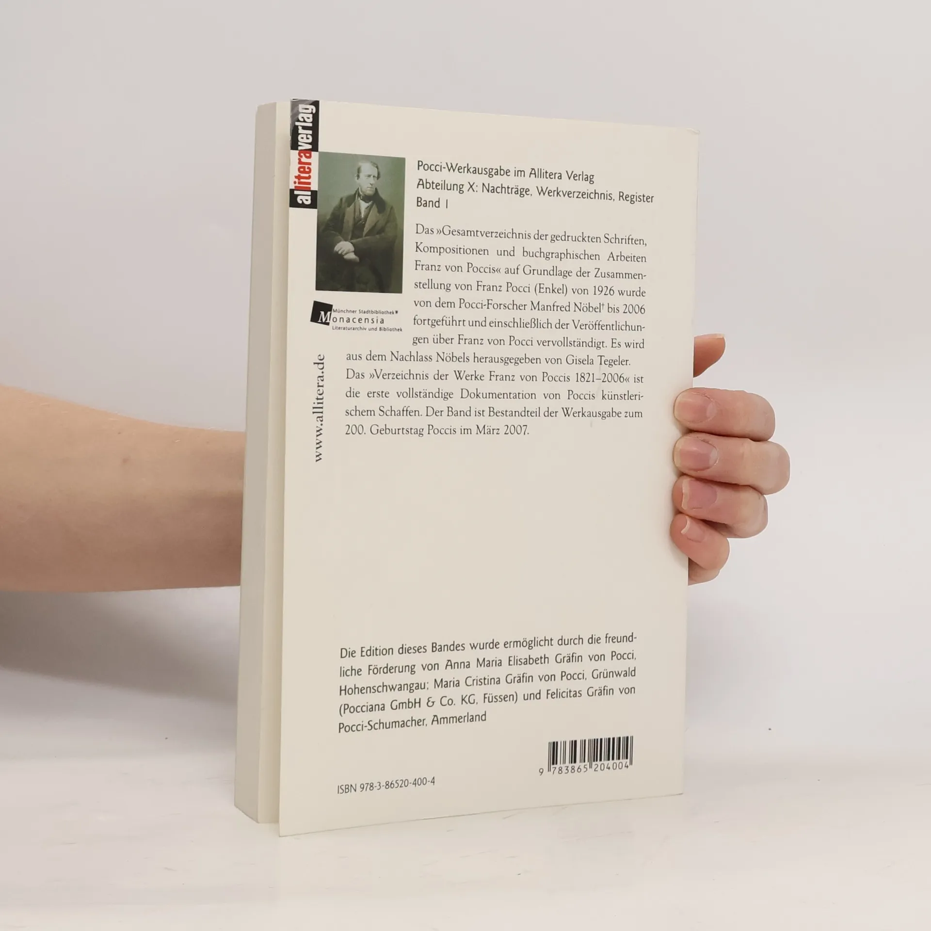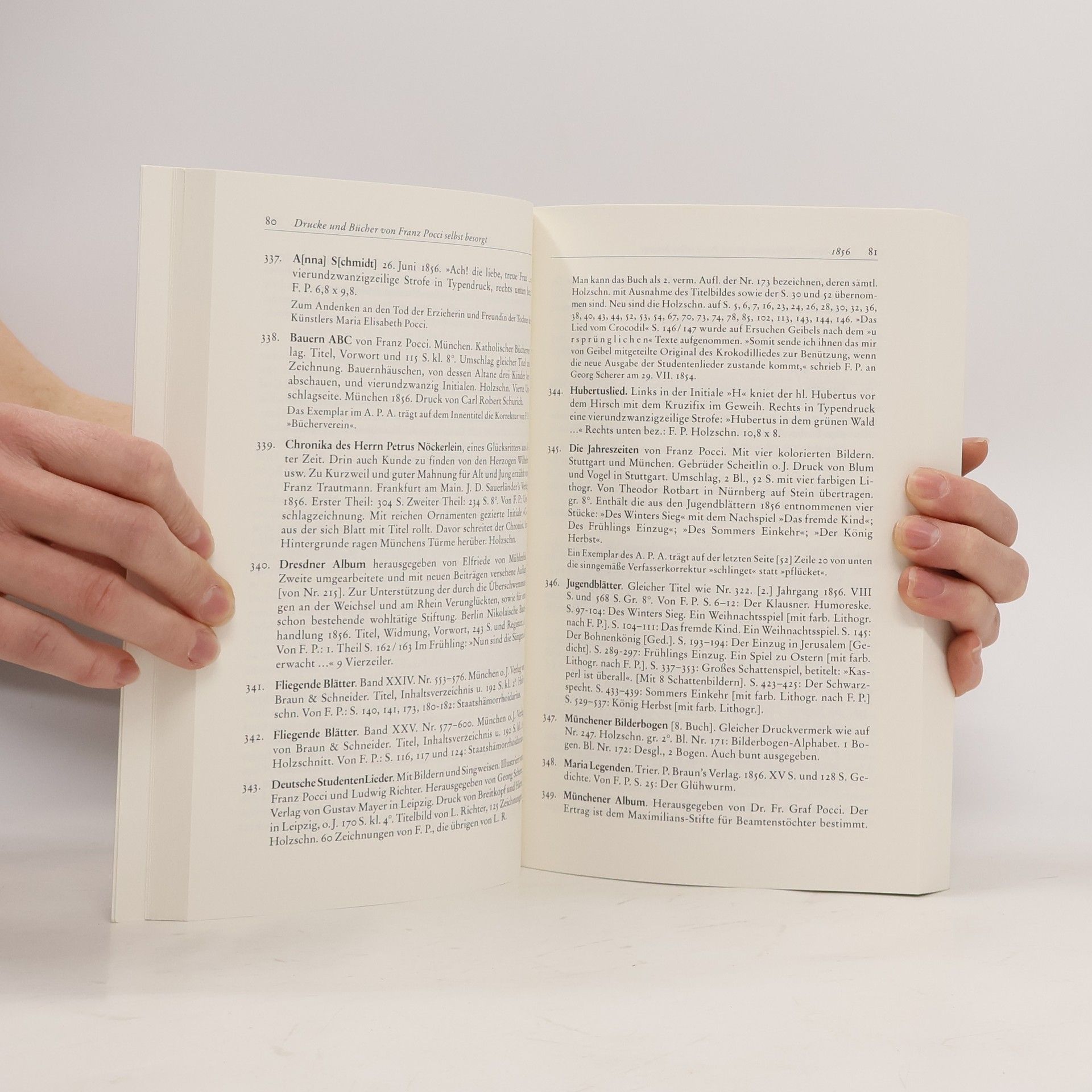 Das Gesamtverzeichnis der gedruckten Schriften, Kompositionen und buchgraphischen Arbeiten Franz von Poccis auf Grundlage der Zusammenstellung von Franz Pocci (Enkel) von 1926 wurde von dem Pocci-Forscher Manfred Nobel+ bis 2006 fortgefuhrt und einschlielich der Veroffentlichungen uber Franz von Pocci vervollstandigt. Es wird aus dem Nachlass Nobels herausgegeben von Gisela Tegeler. Das Verzeichnis der Werke Franz von Poccis 1821-2006 ist die erste vollstandige Dokumentation von Poccis kunstlerischem Schaffen. Der Band ist Bestandteil der Werkausgabe zum 200. Geburtstag Poccis im Marz 2007.