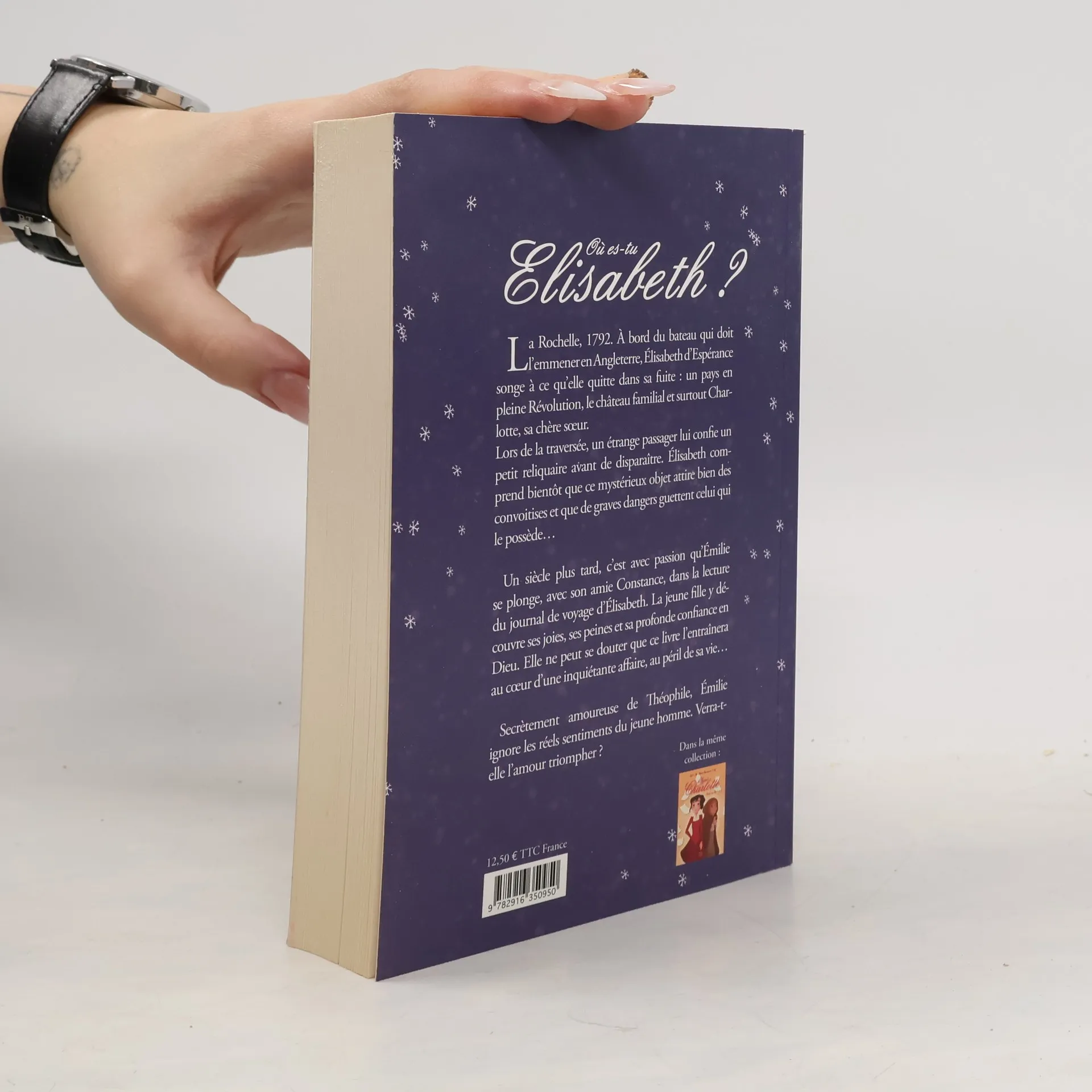 La Rochelle, 1792. À bord du bateau qui doit l'emmener en Angleterre, Élisabeth d'Espérance songe à ce qu'elle quitte dans sa fuite : un pays en pleine Révolution, le château familial et surtout Charlotte, sa chère soeur. Lors de la traversée, un étrange passager lui confie un petit reliquaire avant de disparaître. Élisabeth comprend bientôt que ce mystérieux objet attire bien des convoitises et que de graves dangers guettent celui qui le possède... Un siècle plus tard, c'est avec passion qu'Émilie se plonge, avec son amie Constance, dans la lecture du journal de voyage d'Élisabeth. La jeune fille y découvre ses joies, ses peines et sa profonde confiance en Dieu. Elle ne peut se douter que ce livre l'entraînera au coeur d'une inquiétante affaire, au péril de sa vie... Secrètement amoureuse de Théophile, Émilie ignore les réels sentiments du jeune homme. Verra-t-elle l'amour triompher?