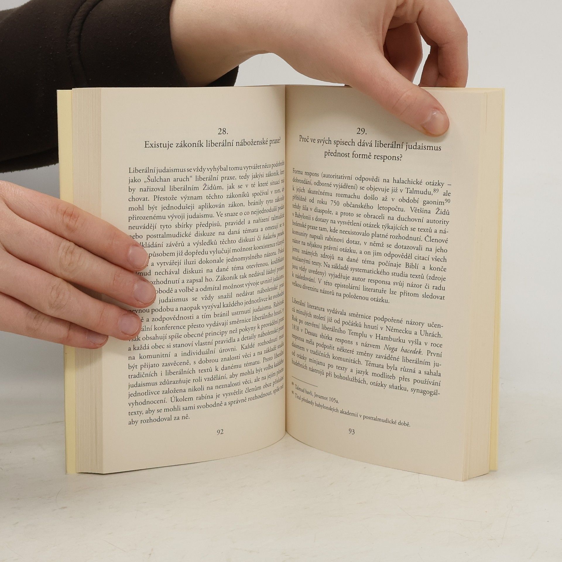Pauline Bebe, jedna z prvních evropských rabínek, podává ve formě odpovědí na sedmdesát otázek základní informace o liberálním judaismu. Liberální či reformní hnutí v židovské víře je moderní alternativou k ortodoxnímu a konzervativnímu judaismu, k němuž se hlásí čím dále více židovských i nežidovských věřících . Od svých počátků v Německu v 18, století přes rozvoj reformního hnutí zejména v USA až po dnešek se liberální judaismus neustále vyvíjí a snaží se úvést do souladu židovskou víru a současný svět. Pauline Bebe se věnuje hlavním zásadám hnutí, požadavkům na věřícího, snahu liberálního hnutí o rovnoprávnost pohlaví až po obřady a liberální náboženskou praxi.