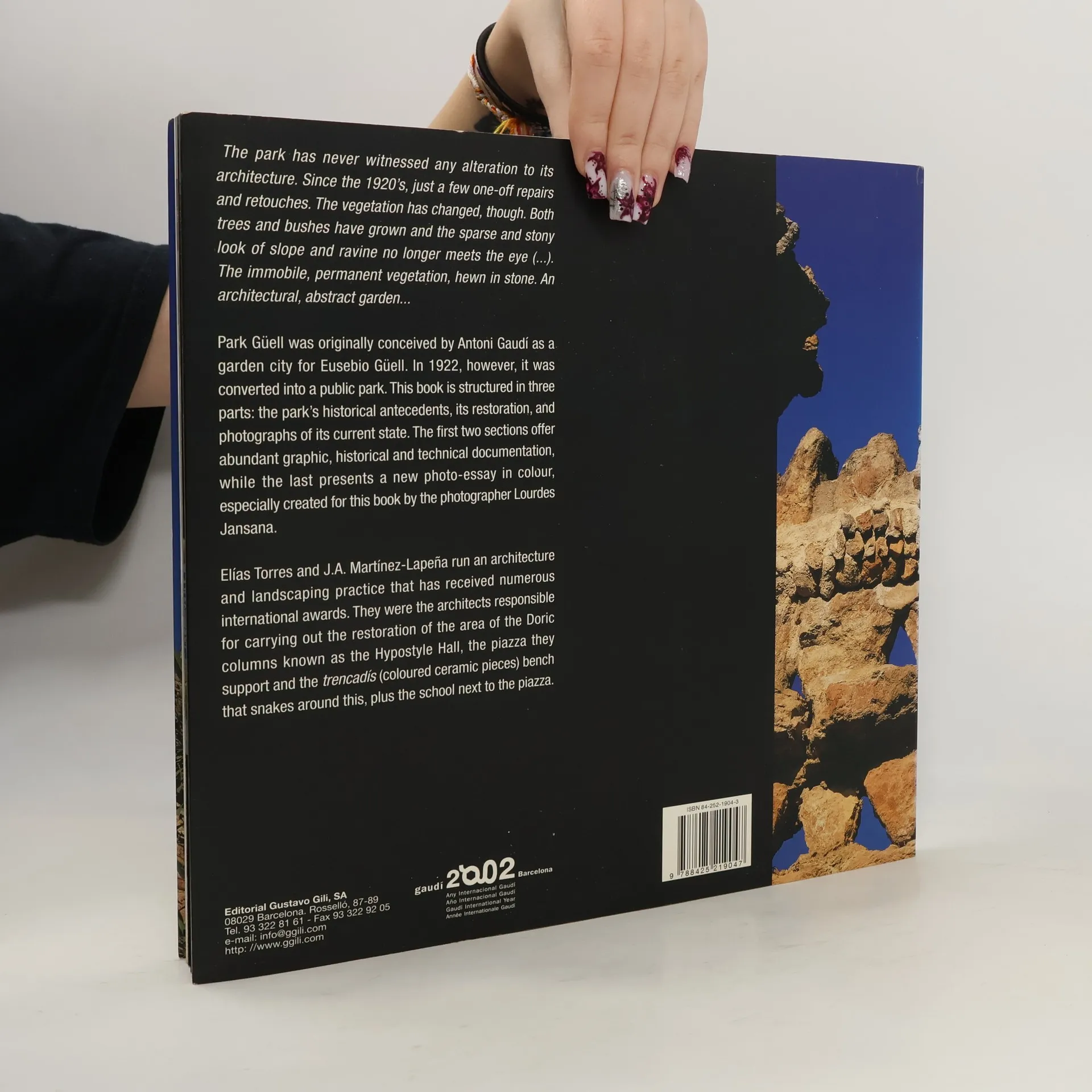 Park Güell was originally conceived by Antoni Gaudí as a garden city for Eusebio Güell. In 1922, however, it was converted into a public park. This book is structured in three the park's historical antecedents, its restoration, and photographs of its current state. The first two sections offer abundant graphic, historical and technical documentation, while the last presents a new photo-essay in colour, especially created for this book by the photographer Lourdes Jansana.Elías Torres and J.A. Martínez-Lapeña run an architecture and landscaping practice that has received numerous international awards. They were the architects responsible for carrying out the restoration of the area of the Doric columns known as the Hypostyle Hall, the piazza they support and the trencadís (coloured ceramic pieces) bench that snakes around this, plus the school next to the piazza.