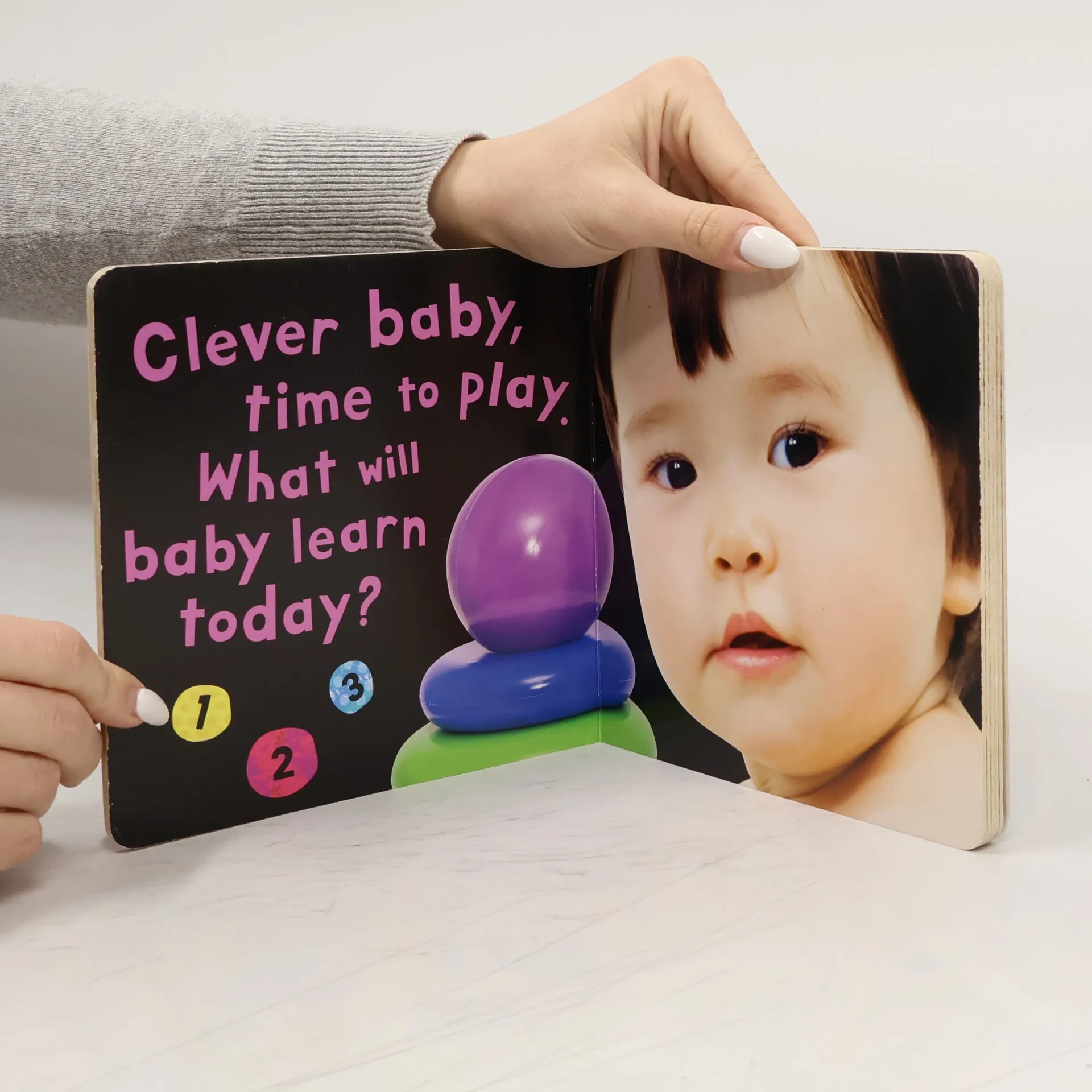 This engaging book follows baby's day from waking to bedtime. Every turn of the page reveals an adorable baby image and a simple rhyme. A perfect book to share with little ones.