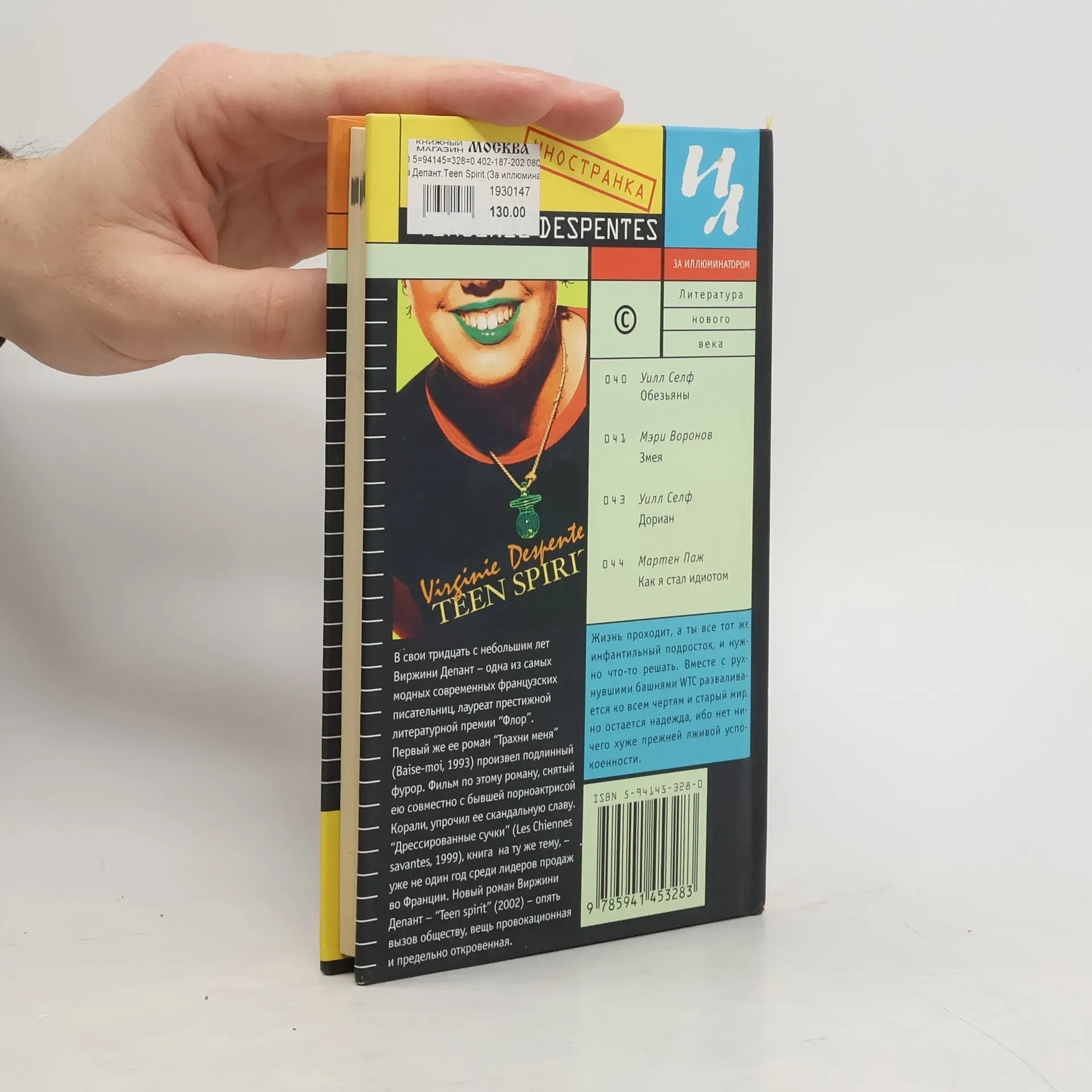 В свои тридцать с небольшим лет Виржини Депант (Virginie Despentes) - одна из самых модных современных французских писательниц, лауреат престижной литературной премии "Флор". Первый же ее роман "Трахни меня" (Baise-moi, 1993) произвел подлинный фурор. Фильм по этому роману, снятый ею совместно с бывшей порноактрисой Корали, упрочил ее скандальную славу. "Дрессированные сучки" (Les Chiennes savantes,-.1999), где сюжеты Трахни меня" получили еще более скандальное продолжение, - уже не один год среди лидеров продаж во Франции. Новый роман Виржини Депант - Teen spirit" (2002) - это опять вызов обществу, вещь провокационная и предельно откровенная. "Жизнь проходит, а ты все тот же; инфантильный подросток, и нужно что-то решать. Вместе с рухнувшими башнями WTC разваливается ко всем чертям и старый мир, но остается надежда, ибо нет ничего хуже прежней лживой успокоенности".