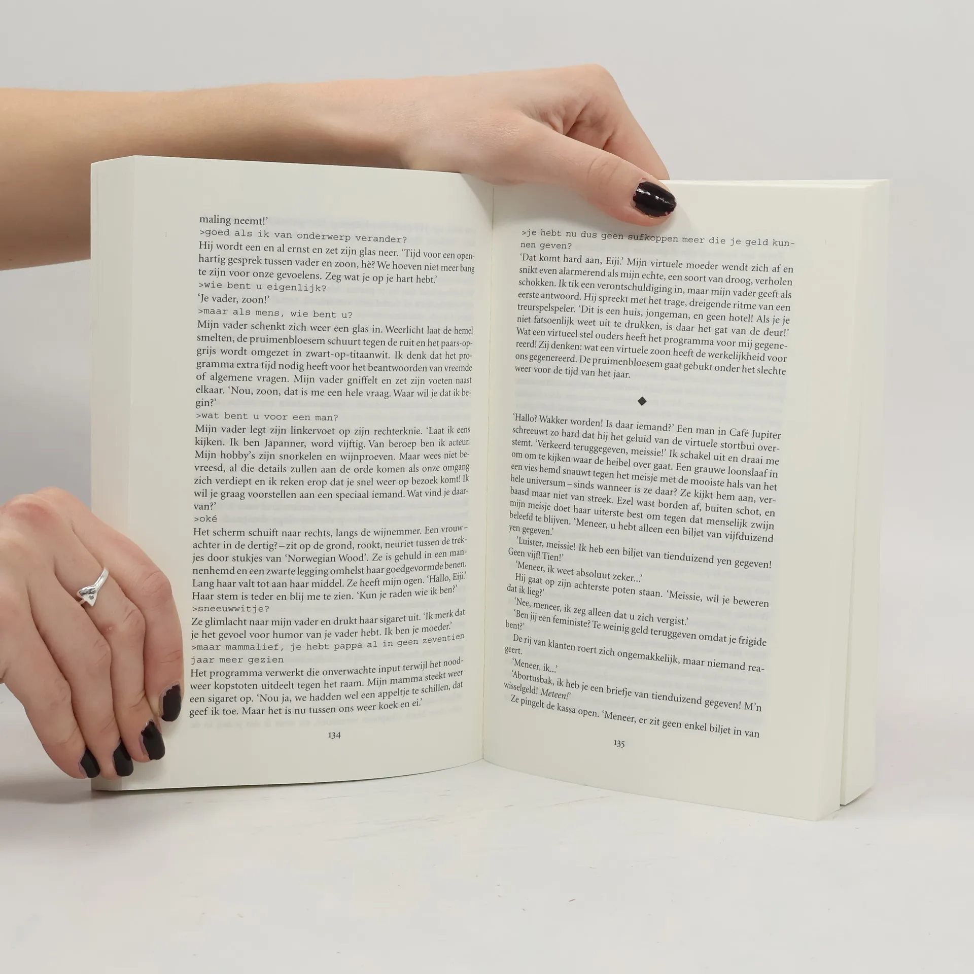 Aan de vooravond van zijn twintigste verjaardag arriveert Eiji Miyake in Tokio. Als peuter is hij door zijn moeder in de steek gelaten en toen hij elf was is zijn tweelingzusje verdronken. Eiji heeft maar een doel: hij moet en zal zijn vader vinden, die hij nog nooit heeft ontmoet. In de hectische hoofdstad van het moderne Japan begint hij aan zijn tot mislukken gedoemde zoektocht. Hij wordt onophoudelijk meegezogen in een maalstroom van videogames, herinneringen en nachtmerries. Niets blijft hem bespaard. In een overrompelende stijl beschrijft Mitchell hoe Eiji zich een weg moet banen door een grenzeloos niemandsland vol geisha's, gansters, hackers, detectives en goochelende pizzakoeriers. Eiji jaagt voort op zijn ontdekkingsreis door deze vervreemdende onderwereld. Terwijl hij zich met simpele baantjes in het leven houdt, komt hij zijn vader op het spoor. Hij sluit vriendschap met zijn huisbaas en wordt verliefd op een pianospelende serveerster. Tenslotte keert hij terug naar het zuidelijke eilandje Yakushima, waar alles begon wat echt belangrijk voor hem is.