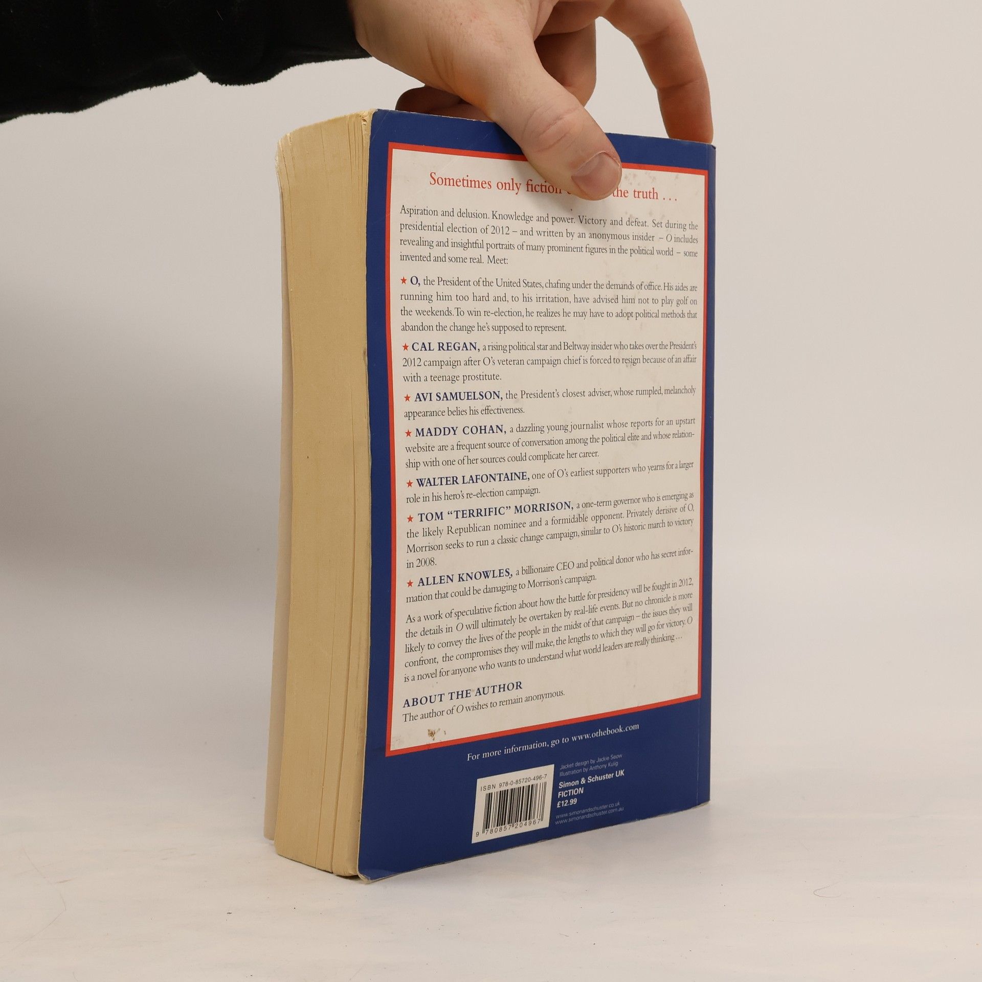 O: A Presidential Novel is a novel about aspiration and delusion, set during the presidential election of 2012 and written by an anonymous author who has spent years observing politics and the fraught relationship between public image and selfregard.