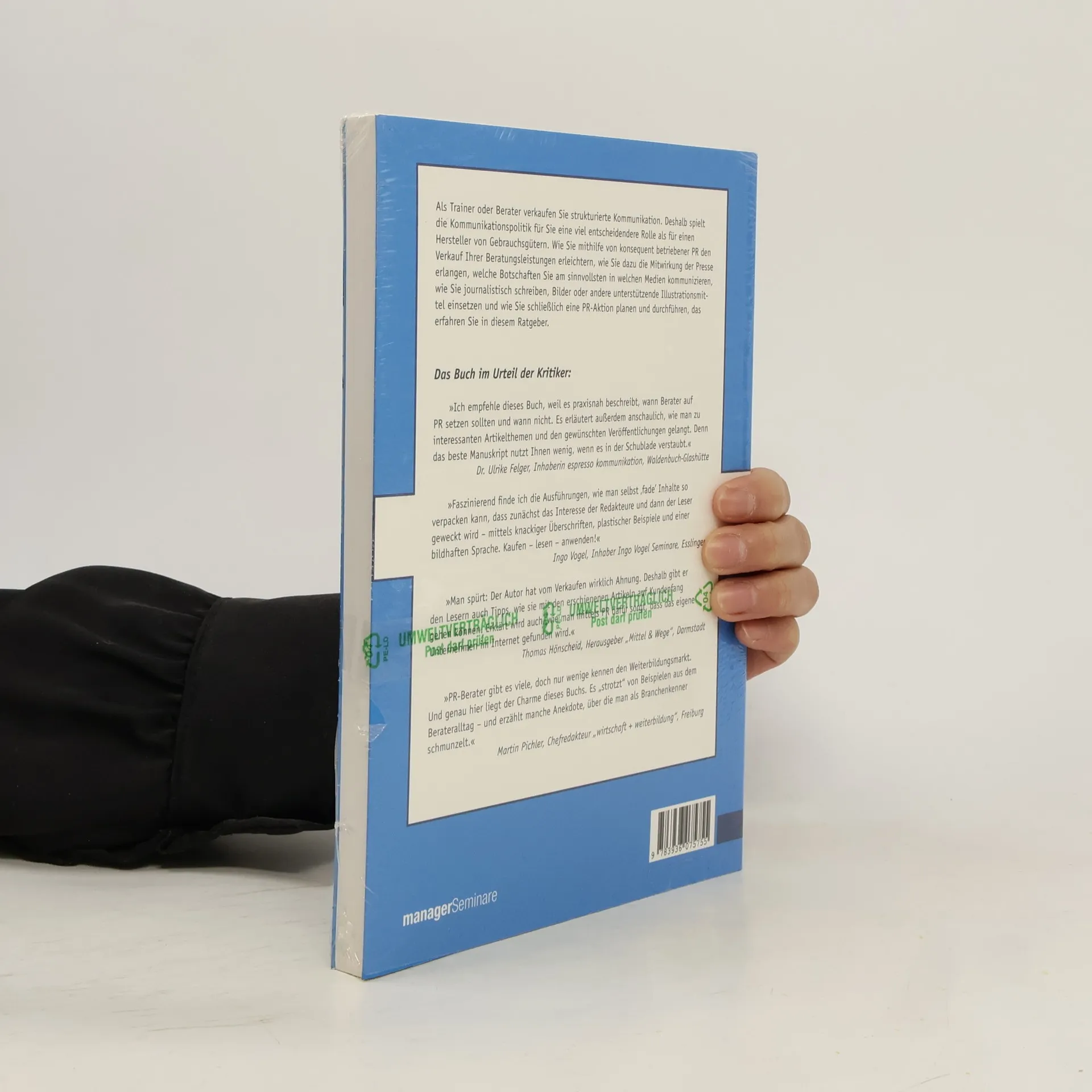 Als Trainer oder Berater verkaufen Sie strukturierte Kommunikation. Deshalb spielt die Kommunikationspolitik für Sie eine viel entscheidendere Rolle, als für einen Hersteller von Gebrauchsgütern. Wie Sie mithilfe von konsequent betriebener PR den Verkauf Ihrer Beratungsleistungen erleichtern, wie Sie dazu die Mitwirkung der Presse erlangen, welche Botschaften Sie am sinnvollsten in welchen Medien kommunizieren, wie Sie journalistisch schreiben, Bilder oder andere unterstützende Illustrationsmittel einsetzen und wie Sie schließlich eine PR-Aktion planen und durchführen, das erfahren Sie in diesem Ratgeber.