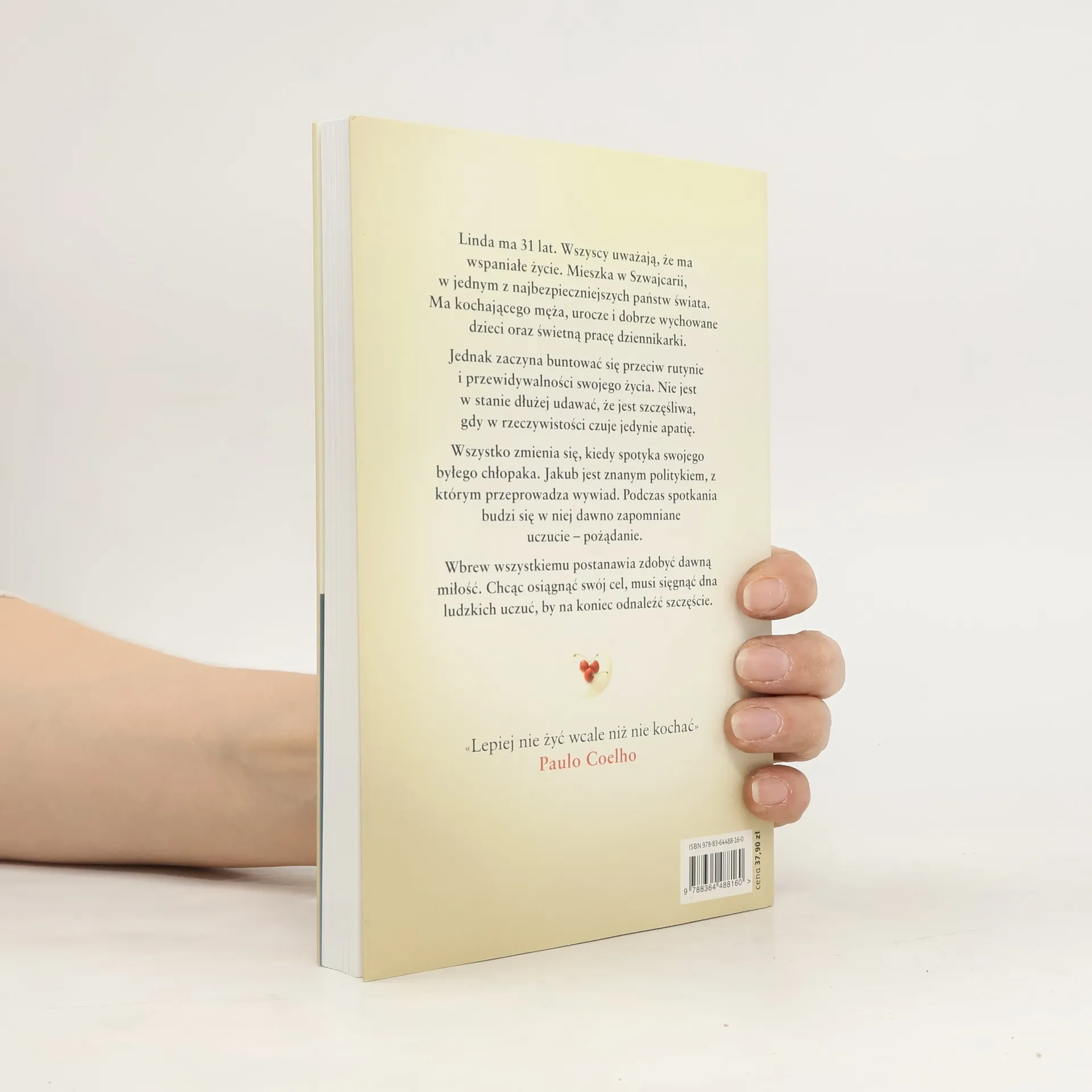 Linda ma 31 lat. Wszyscy uważają, że ma wspaniałe życie. Mieszka w Szwajcarii, w jednym z najbezpieczniejszych państw świata. Ma kochającego męża, urocze i dobrze wychowane dzieci oraz świetną pracę dziennikarki. Jednak zaczyna buntować się przeciw rutynie i przewidywalności swojego życia. Nie jest w stanie dłużej udawać, że jest szczęśliwa, gdy w rzeczywistości czuje jedynie apatię. Wszystko zmienia się, kiedy spotyka swojego byłego chłopaka. Jakub jest znanym politykiem, z którym przeprowadza wywiad. Podczas spotkania budzi się w niej dawno zapomniane uczucie – pożądanie. Wbrew wszystkiemu postanawia zdobyć dawną miłość. Chcąc osiągnąć swój cel, musi sięgnąć dna ludzkich uczuć, by na koniec odnaleźć szczęście.