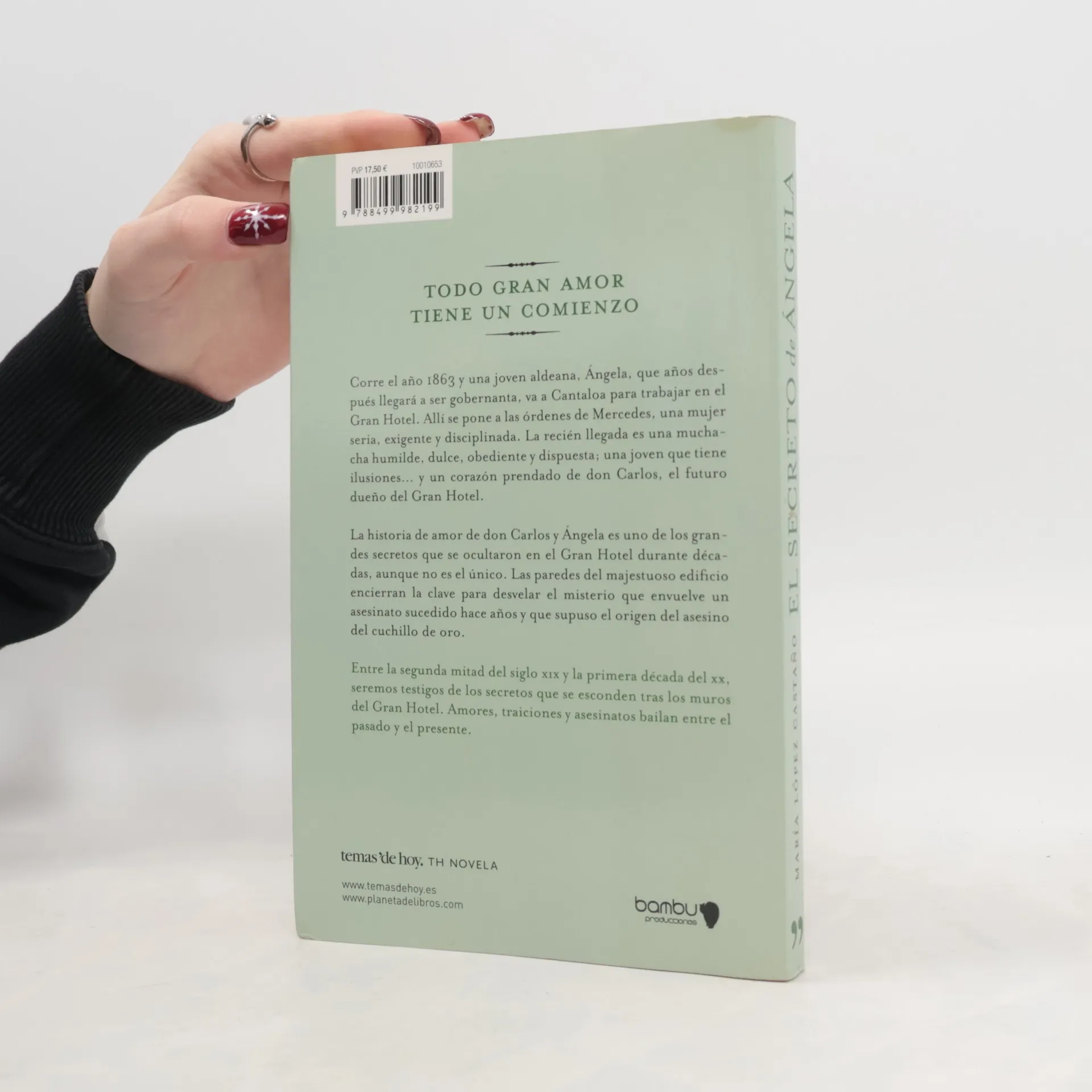 Corre el año 1863 y una joven aldeana, Ángela, que años después llegará a ser gobernanta, va a Cantaloa para trabajar en el Gran Hotel. Allí se pone a las órdenes de Mercedes, una mujer seria, exigente y disciplinada. La recién llegada es una muchacha humilde, dulce, obediente y dispuesta; una joven que tiene ilusiones… y un corazón prendado de don Carlos, el futuro dueño del Gran Hotel. La historia de amor de don Carlos y Ángela es uno de los grandes secretos que se ocultaron en el Gran Hotel durante décadas, aunque no es el único. Las paredes del majestuoso edificio encierran la clave para desvelar el misterio que envuelve un asesinato sucedido hace años y que supuso el origen del asesino del cuchillo de oro. Entre la segunda mitad del siglo XIX y la primera década del XX, seremos testigos de los secretos que se esconden tras los muros del Gran Hotel. Amores, traiciones y asesinatos bailan entre elpasado y el presente.