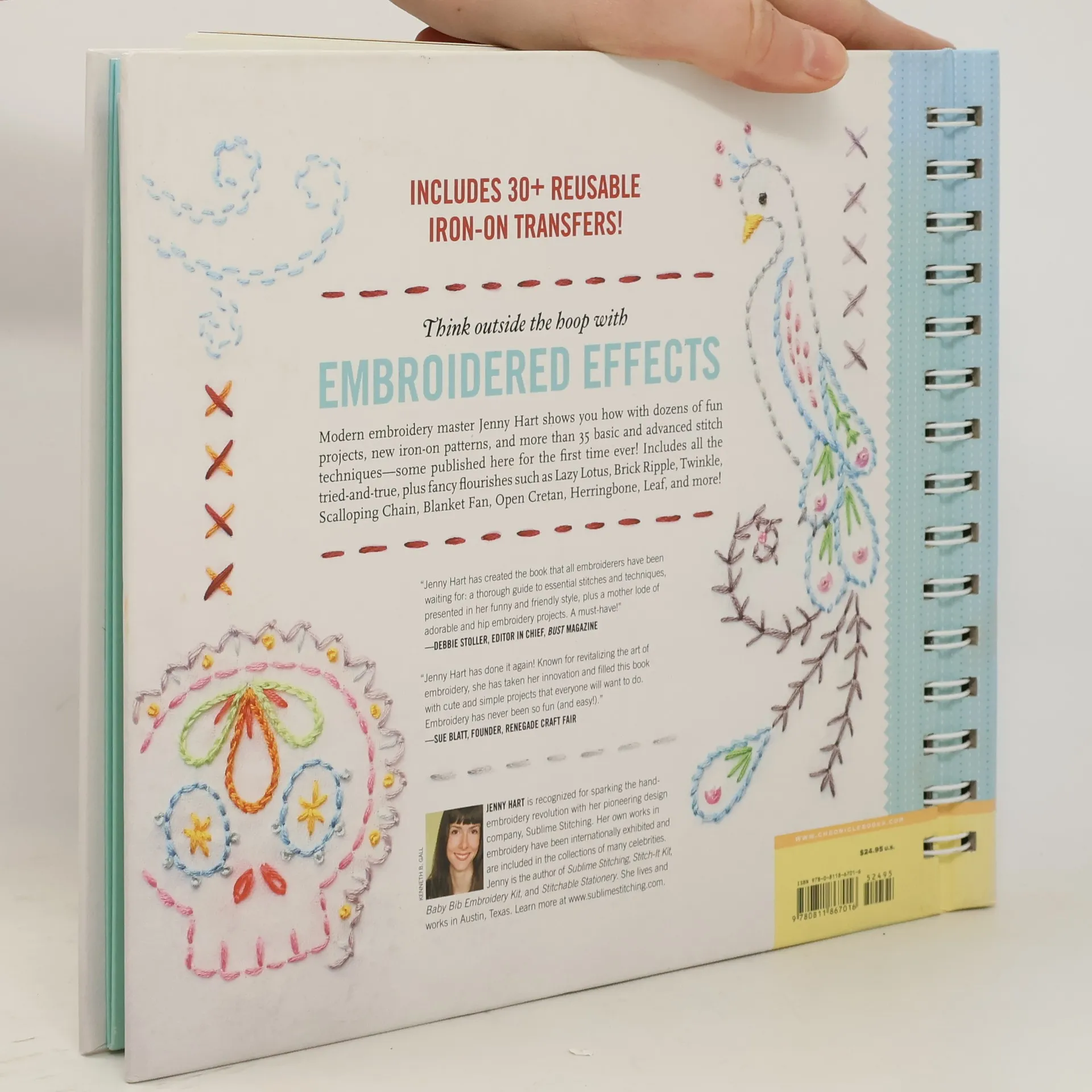 Embroidery empress Jenny Hart taught her legion of fans the basics with the best-selling Stitch-It Kit and Sublime Stitching . Now she takes stitchers one step further with instructions and diagrams for more than 35 stitches, some published here for the first time. To top it off, Embroidered Effects includes dozens of original (and reusable) iron-on transfers. With lots of project photos for guidance, even beginners can learn how to stitch faux tattoos on their shirt sleeves, cheeky fan dancers on their shower curtains, and many more fun projects.