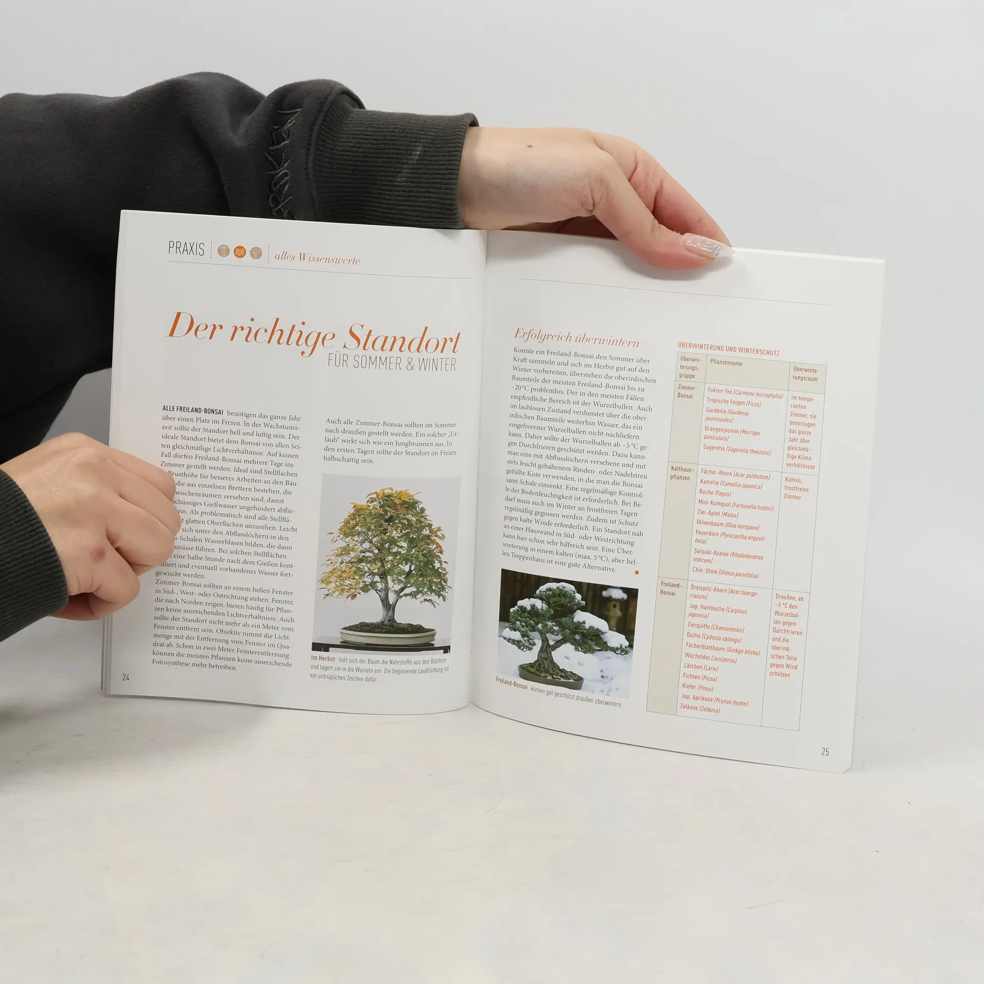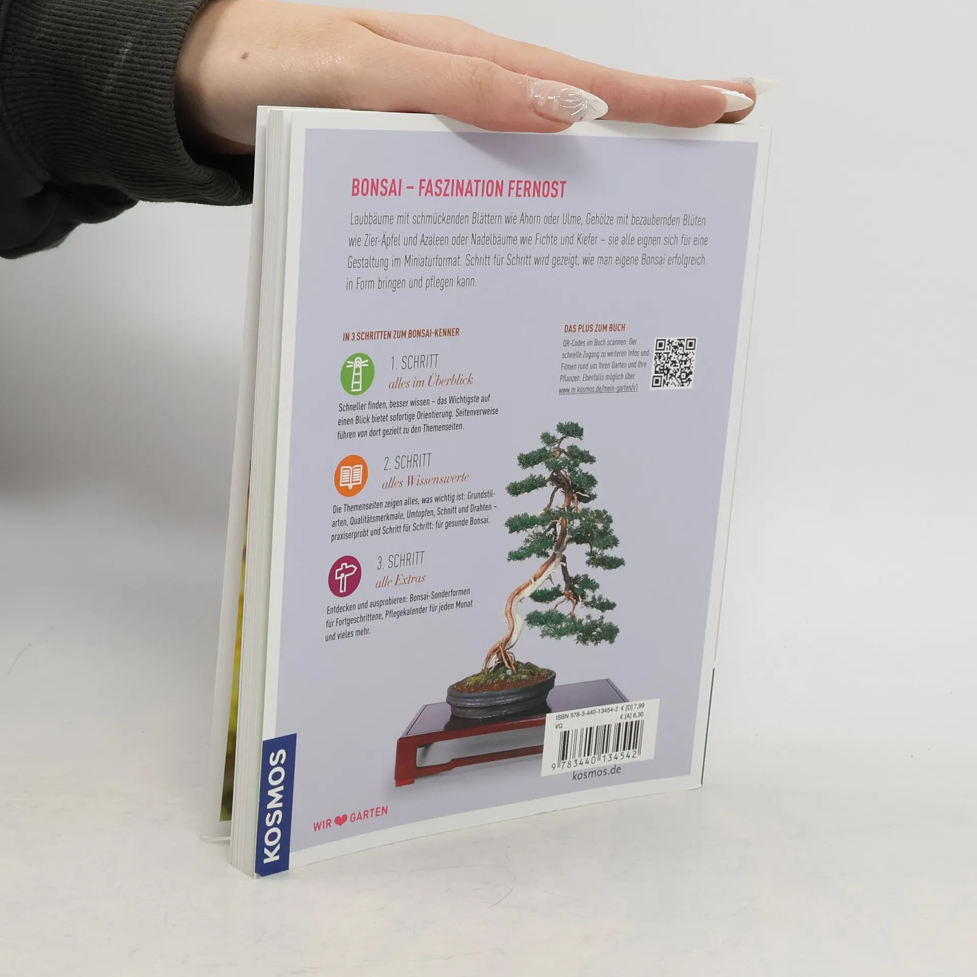 Laubbäume mit schmückenden Blättern wie Ahorn oder Ulme, Gehölze mit bezaubernden Blüten wie Zier-Äpfel und Azaleen oder Nadelbäume wie Fichte und Kiefer – sie alle eignen sich für eine Gestaltung im Miniaturformat. Schritt für Schritt wird gezeigt, wie man eigene Bonsai erfolgreich in Form bringen und pflegen kann. Mit Einkaufslisten, Pflanzentipps und Schritt-für-Schritt-Anleitungen für unterwegs. Das Plus zum Buch: erklärende Filme und viele weitere Tipps sind online einfach und schnell aufrufbar über QR-Codes im Buch.