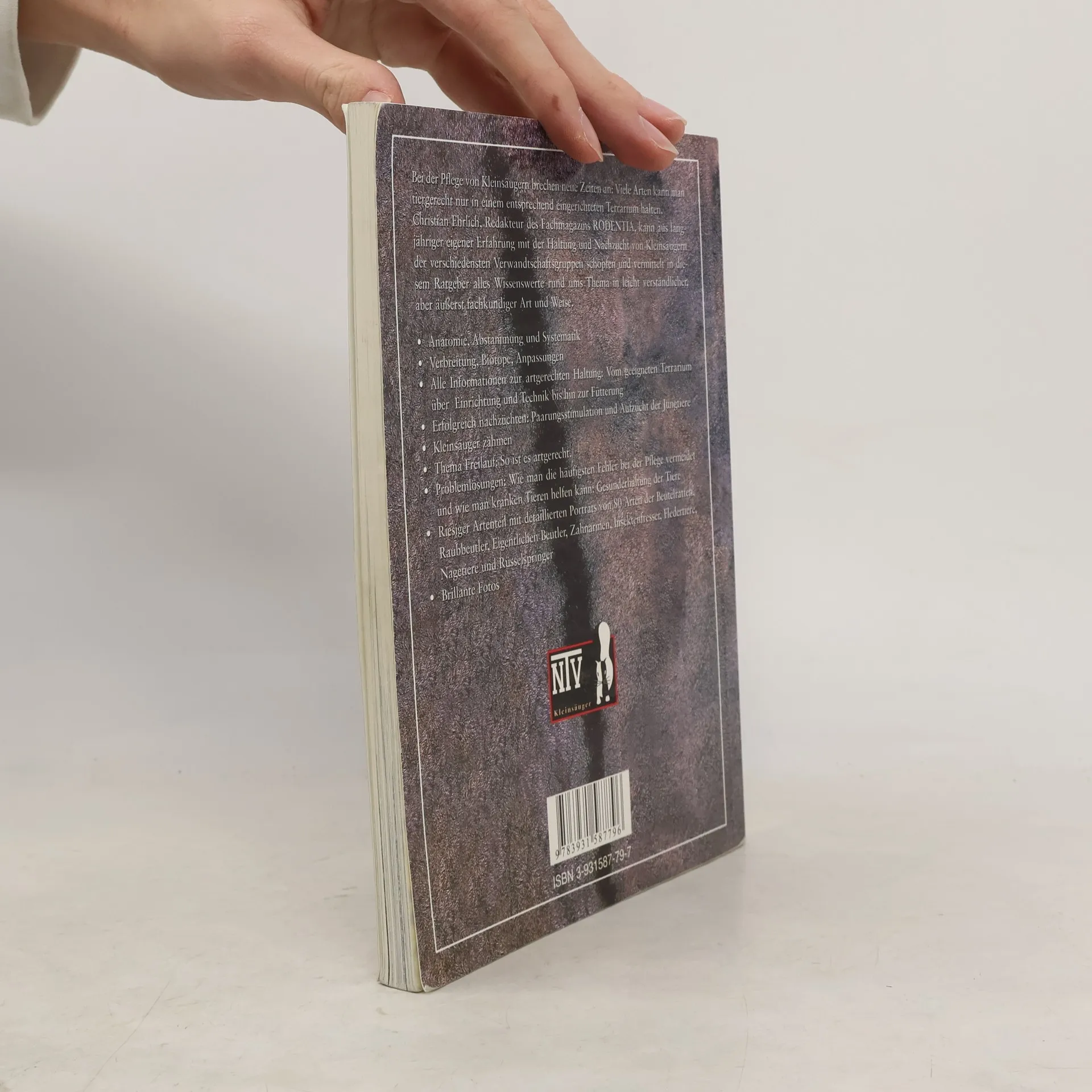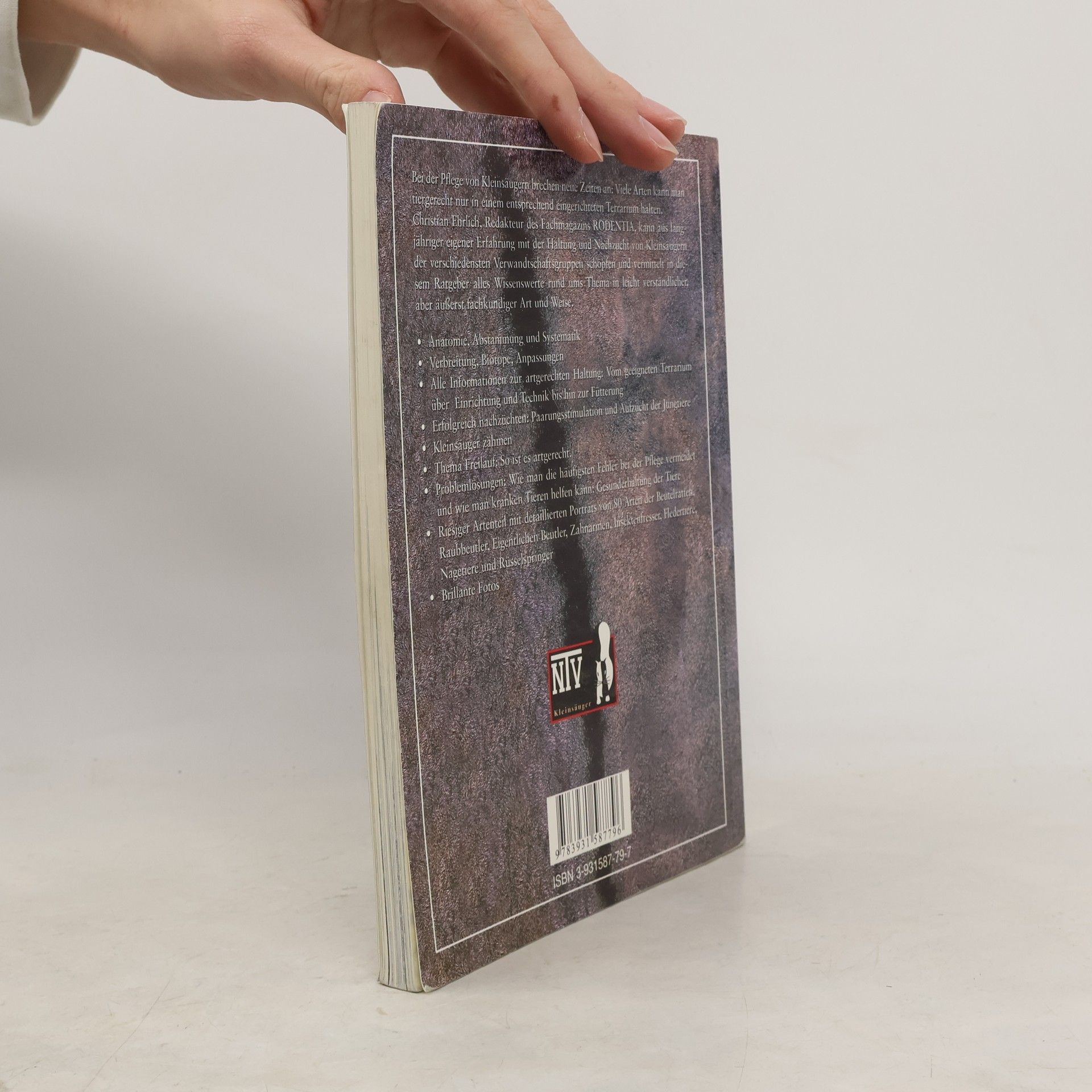 Weg vom muffigen Käfig, hin zu einer modernen und artgerechten Tierhaltung: Viele Kleinsäuger lassen sich am besten in einem entsprechend eingerichteten Terrarium halten. Dieses Buch stellt die geeigneten Terrarientypen vor und schildert ausführlich und praxisnah die erfolgreiche Zucht und Pflege der Tiere. Anatomie, Abstammung und Systematik Verbreitung, Biotope, Anpassungen Alle Informationen zur artgerechten Haltung: Vom geeigneten Terrarium über Einrichtung und Technik bis hin zur Fütterung Erfolgreich nachzüchten: Paarungsstimulation und Aufzucht der Jungtiere Kleinsäuger zähmen Thema Freilauf: So ist es artgerecht. Problemlösungen: Wie man die häufigsten Fehler bei der Pflege vermeidet, und wie man kranken Tieren helfen kann: Gesunderhaltung der Tiere Riesiger Artenteil mit detaillierten Porträts von 80 Arten der Beutelratten, Raubbeutler, Eigentlichen Beutler, Zahnarmen, Insektenfresser, Fledertiere, Nagetiere und Rüsselspringer Brillante Fotos