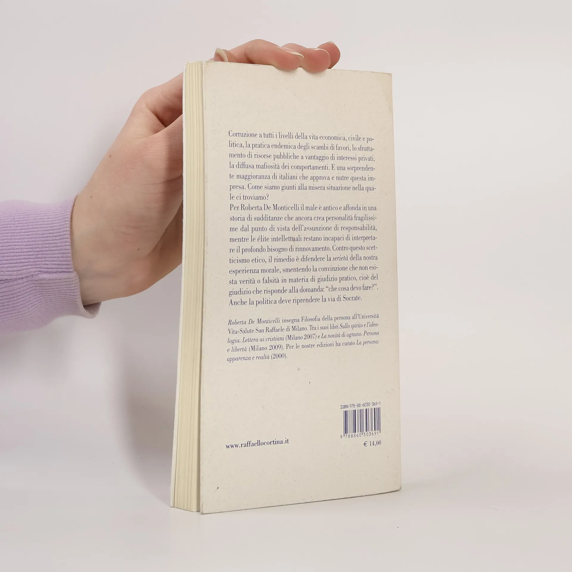 Corruzione a tutti i livelli della vita economica, civile e politica, la pratica endemica degli scambi di favori, lo sfruttamento di risorse pubbliche a vantaggio di interessi privati, la diffusa mafiosità dei comportamenti. E una sorprendente maggioranza degli italiani che approva e nutre questa impresa. Come siamo giunti alla misera situazione nella quale ci troviamo? Per Roberta De Monticelli il male è antico e affonda nella tendenza degli italiani a “prendere il mondo com’è”, senza nessun riguardo per la virtù. Contro tale scetticismo etico, il rimedio è difendere la serietà della nostra esperienza morale, smentendo la convinzione che non esista verità o falsità in materia di giudizio pratico, cioè del giudizio che risponde alla domanda: “che cosa devo fare?”. Roberta De Monticelli insegna Filosofia della persona all’Università Vita-Salute San Raffaele di Milano. Tra i suoi libri Esercizi di pensiero per apprendisti filosofi (Bollati Boringhieri 2006) e L’ordine del cuore (Garzanti 2008). Per le nostre edizioni ha curato La persona: apparenza e realtà (2000).