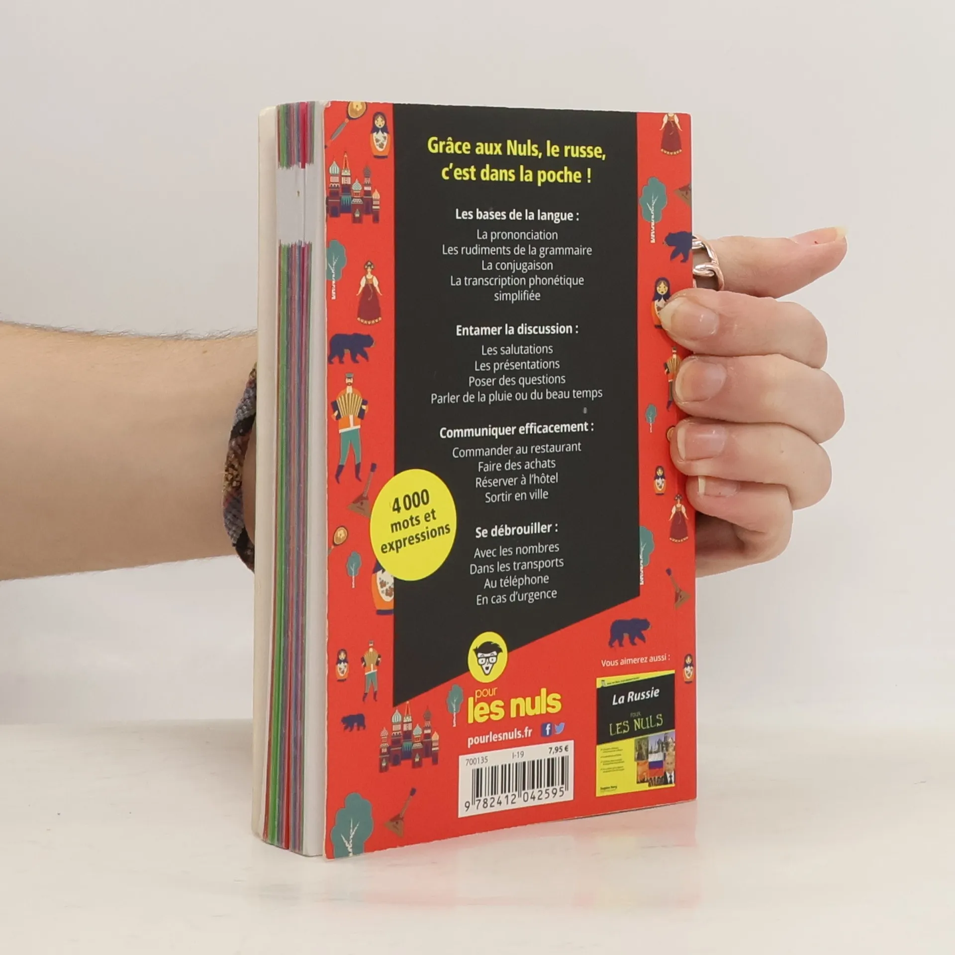 Grâce aux Nuls, le russe, c'est dans la poche ! Les bases de la langue : la prononciation, les rudiments de la grammaire, la conjugaison, la transcription phonétique simplifiée. Entamer la discussion : les salutations, les présentations, poser des questions, parler de la pluie ou du beau temps. Communiquer efficacement : commander au restaurant, faire des achats, réserver à l'hôtel, sortir en ville. Se débrouiller : avec les nombres, dans les transports, au téléphone, en cas d'urgence. 4000 mots et expressions.