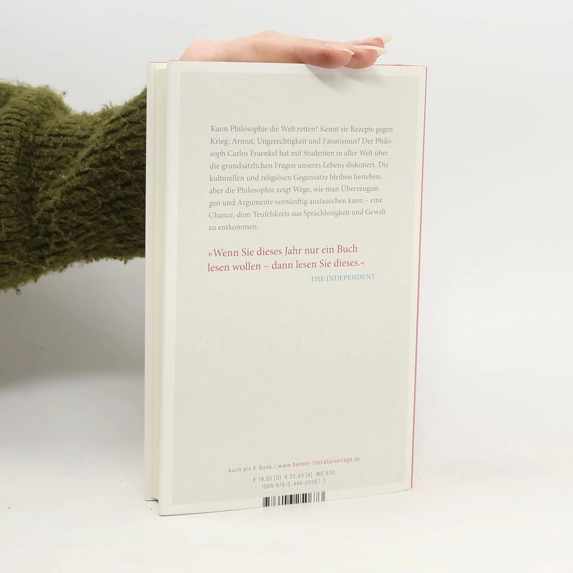Was halten palästinensische Studenten von Platon? Was sagt die griechische Philosophie Bewohnern brasilianischer Slums oder jungen Muslimen in Indonesien. Carlos Fraenkel ist an Brennpunkte politischer, religiöser und sozialer Konflikte gereist, um dort Grundsatzfragen zu diskutieren: Was heißt Gerechtigkeit? Gibt es eine Rechtfertigung für Gewalt? Steht über dem menschlichen ein göttliches Recht? Die Philosophie kann die Gegensätze zwischen Religionen und Kulturen nicht aufheben. Aber sie zeigt uns, wie wir Positionen begründen und Argumente austauschen können – was in einer Welt der Sprachlosigkeit und Gewalt viel bedeutet. Ein ungewöhnliches Buch und ein großartiger Beweis für den praktischen Nutzen der Philosophie.