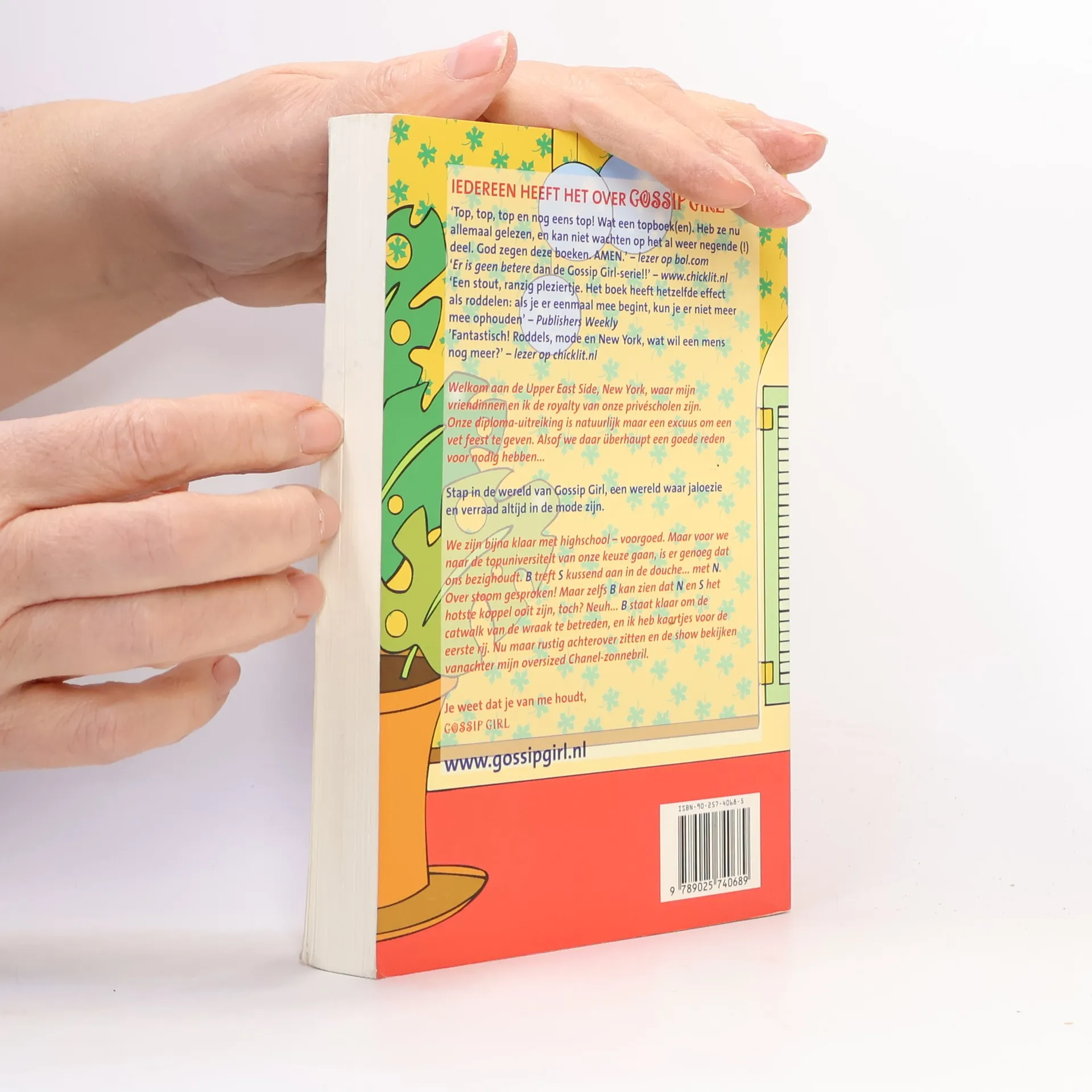 Welkom aan de Upper East Side, New York, waar mijn vriendinnen en ik de royalty van onze privéscholen zijn. Onze diploma-uitreiking is natuurlijk maar een excuus om een vet feest te geven. Alsof we daar überhaupt een goede reden voor nodig hebben... We zijn bijna klaar met highschool - voorgoed. Maar voor we naar de topuniversiteit van onze keuze gaan, is er genoeg dat ons bezighoudt. B treft 5 kussend aan in de douche... met N. Over stoom gesproken! Maar zelfs B kan zien dat N en S het hotste koppel ooit zijn, toch? Neuh... B staat klaar om de catwalk van de wraak te betreden, en ik heb kaartjes voor de eerste rij. Nu maar rustig achterover zitten en de show bekijken vanachter mijn oversized Chanel-zonnebril. Stap in de wereld van Gossip Girl, een wereld waar jaloezie en verraad altijd in de mode zijn.