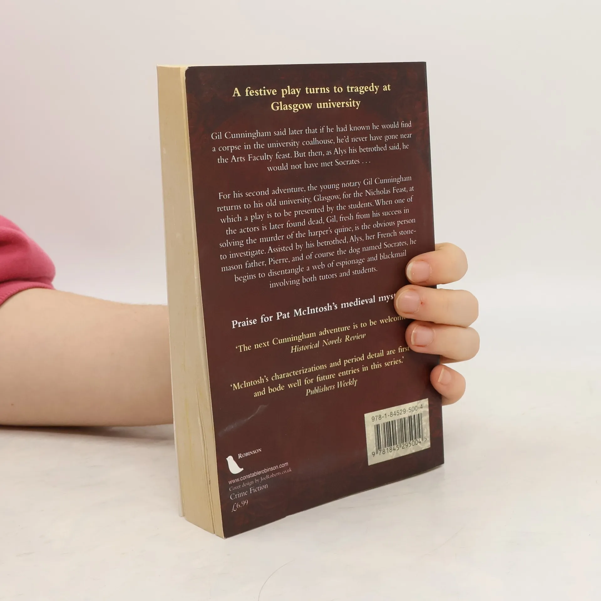 Gil Cunningham returns to his old university for the Nicholas Feast, where he and his colleagues are entertained by a play presented by some of the students. One of the actors, William Irvine, is later found murdered and Gil assisted by Alys, begins to disentangle a web of espionage and blackmail involving William's tutors and fellow students.