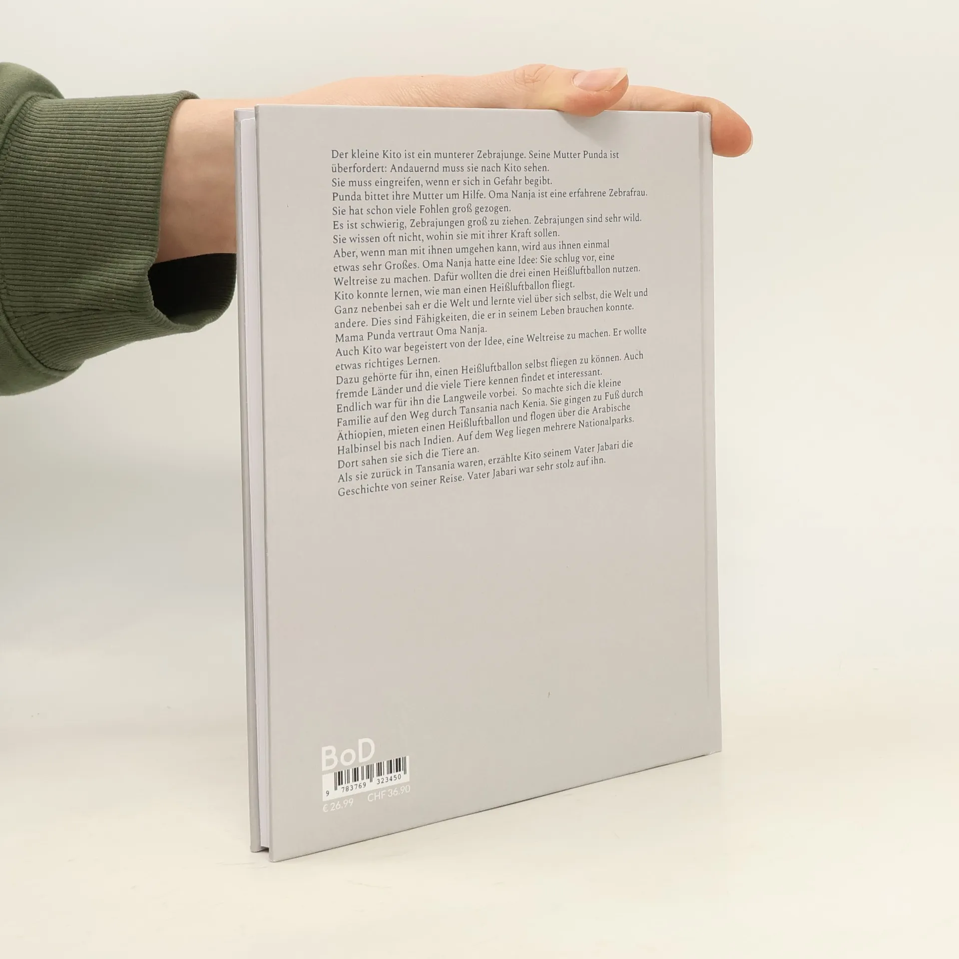 Der kleine Kito ist ein munterer Zebrajunge. Seine Mutter Punda ist überfordert: Andauernd muss sie nach Kito sehen. Sie muss eingreifen, wenn er sich in Gefahr begibt. Punda bittet ihre Mutter um Hilfe. Oma Nanja ist eine erfahrene Zebrafrau. Sie hat schon viele Fohlen großgezogen. Es ist schwierig, Zebrajungen groß zu ziehen. Zebrajungen sind sehr wild. Sie wissen oft nicht, wohin sie mit ihrer Kraft sollen. Aber, wenn man mit ihnen umgehen kann, wird aus ihnen einmal etwas sehr Großes. Oma Nanja hatte eine Idee: Sie schlug vor, eine Weltreise zu machen. Dafür wollten die drei einen Heißluftballon nutzen. Kito konnte lernen, wie man einen Heißluftballon fliegt. Ganz nebenbei sah er die Welt und lernte viel über sich selbst, die Welt und andere. Dies sind Fähigkeiten, die er in seinem Leben brauchen konnte. Mama Punda vertraut Oma Nanja. Auch Kito war begeistert von der Idee, eine Weltreise zu machen. Er wollte etwas richtiges Lernen. Dazu gehörte für ihn, einen Heißluftballon selbst fliegen zu können. Auch fremde Länder und die viele Tiere kennen findet et interessant. Endlich war für ihn die Langweile vorbei. So machte sich die kleine Familie auf den Weg durch Tansania nach Kenia. Sie gingen zu Fuß durch Äthiopien, mieten einen Heißluftballon und flogen über die Arabische Halbinsel bis nach Indien. Auf dem Weg liegen mehrere Nationalparks. Dort sahen sie sich die Tiere an. Als sie zurück in Tansania waren, erzählte Kito seinem Vater Jabari die Geschichte von seiner Reise. Vater Jabari war sehr stolz auf ihn.