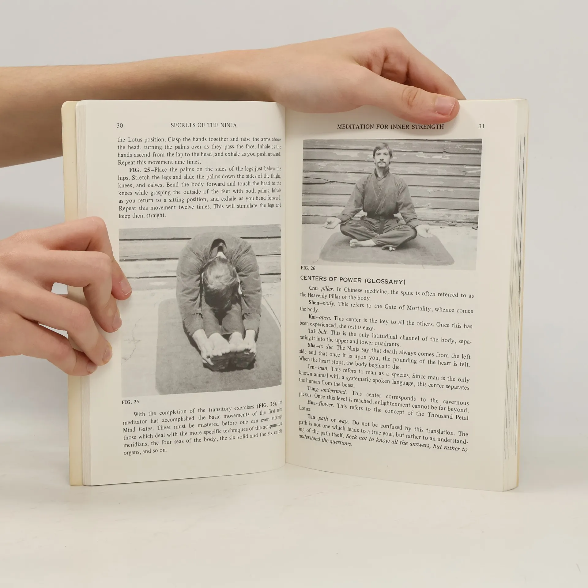 Demonstrates the techniques ninja use to climb walls, conceal themselves, attack sentries, set up ambushes, throw weapons, and escape capture