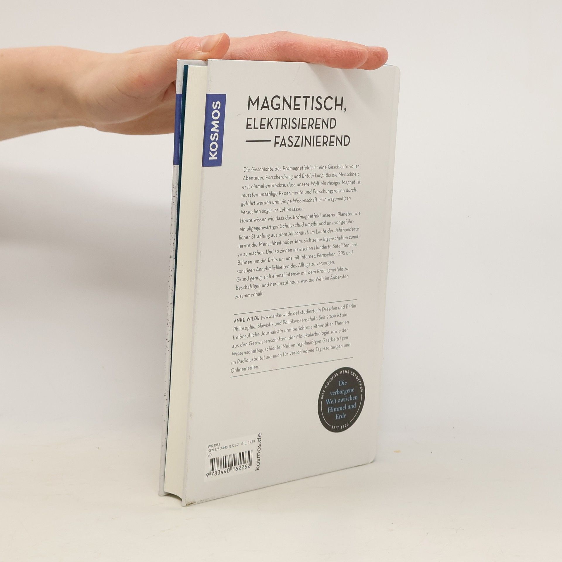 Das Magnetfeld der Erde umgibt uns wie ein mächtiger, unsichtbarer Schutzschild. Es sorgt dafür, dass Zugvögel ihren Weg finden, Kompassnadeln in die richtige Richtung weisen und Satelliten unbehelligt vom Weltraumwetter Daten senden. Ohne das Magnetfeld wäre Leben auf der Erde gar nicht möglich. Die Wissenschaftsjournalistin Anke Wilde taucht mit ihrem Lesebuch tief in die verborgene Welt zwischen Himmel und Erde ein. Ganz ungezwungen geht sie der Frage nach, „was die Welt im Äußersten zusammenhält“: Fachlich fundiert, oft überraschend und auf einmalig unterhaltsame Weise.