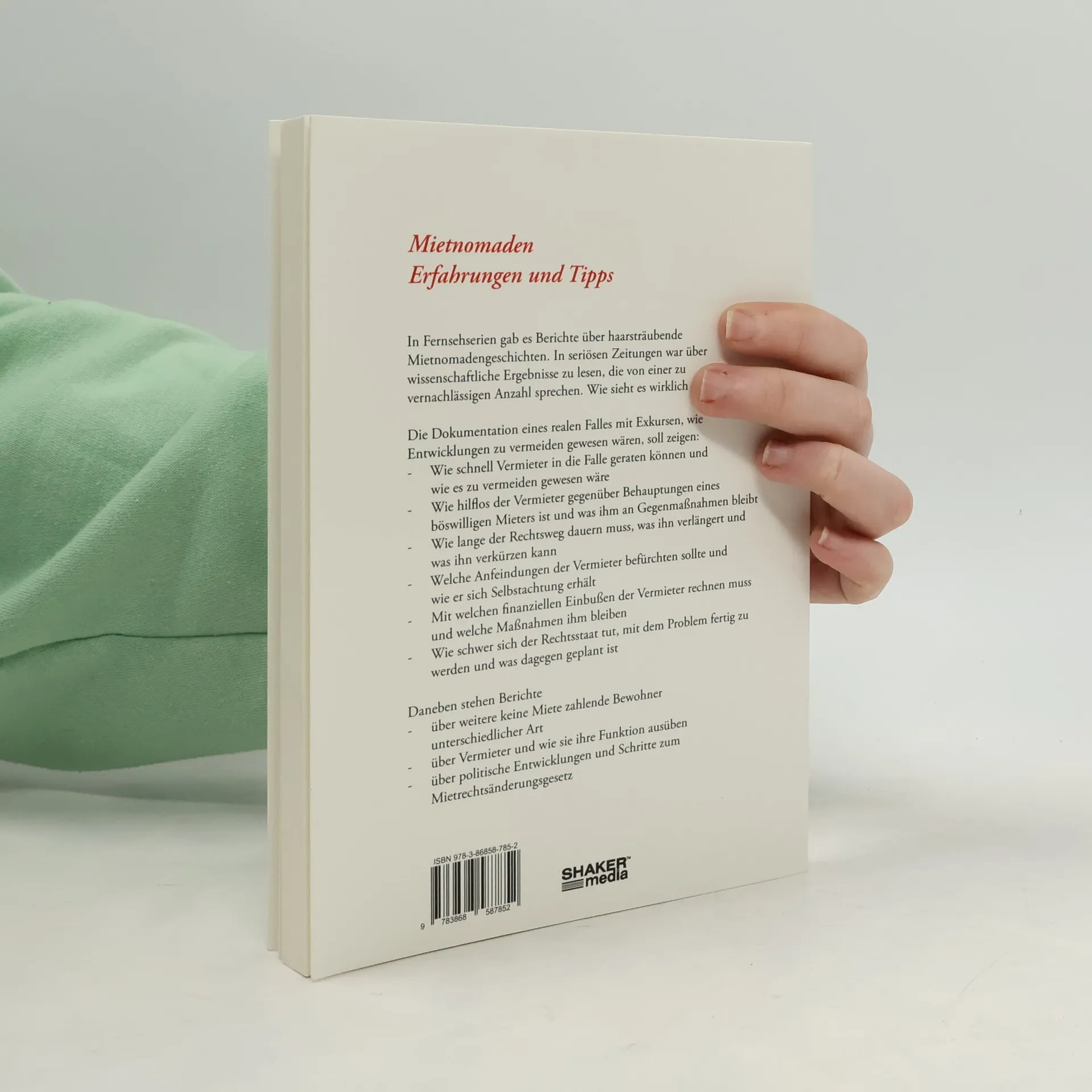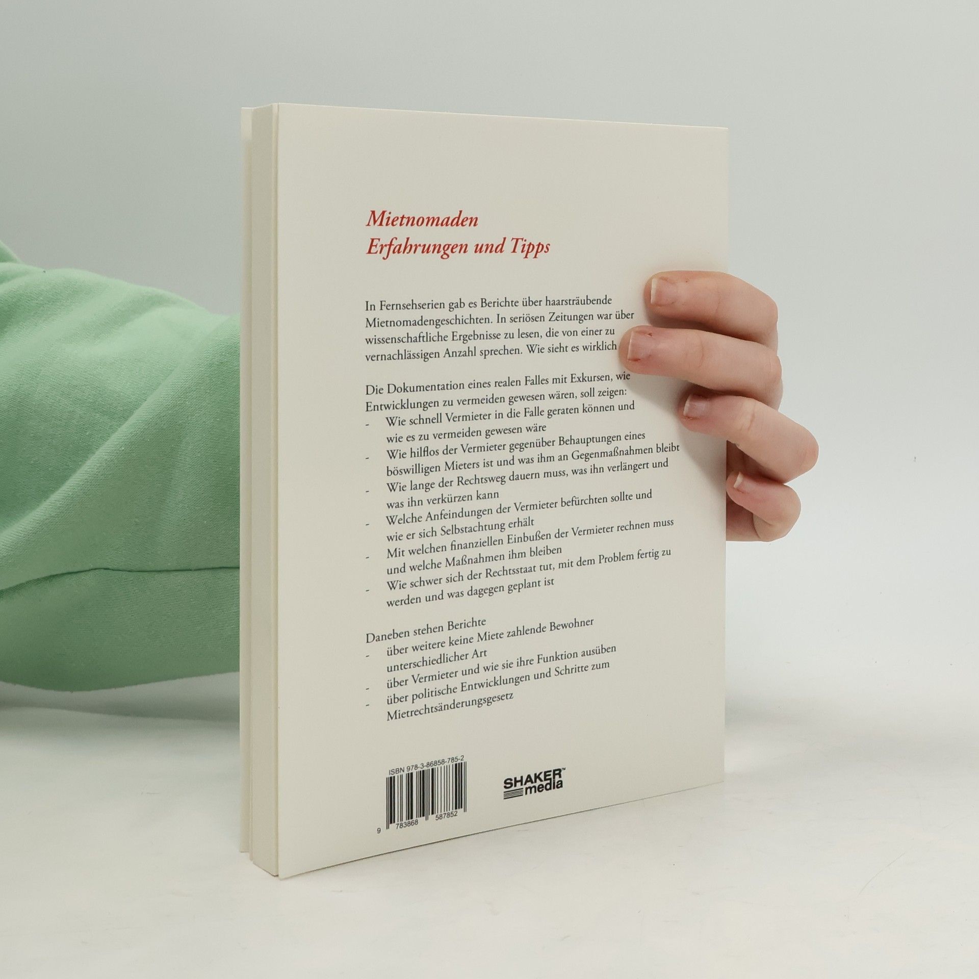 In Fernsehserien gab es Berichte über haarsträubende Mietnomadengeschichten. In seriösen Zeitungen war über wissenschaftliche Ergebnisse zu lesen, die von einer zu vernachlässigen Anzahl sprechen. Wie sieht es wirklich aus? Die Dokumentation eines realen Falles mit Exkursen, wie Entwicklungen zu vermeiden gewesen wären, soll zeigen: Wie schnell Vermieter in die Falle geraten können und wie es zu vermeiden gewesen wäre Wie hilflos der Vermieter gegenüber Behauptungen eines böswilligen Mieters ist und was ihm an Gegenmaßnahmen bleibt Wie lange der Rechtsweg dauern muss, was ihn verlängert und was ihn verkürzen kann Welche Anfeindungen der Vermieter befürchten sollte und wie er sich Selbstachtung erhält Mit welchen finanziellen Einbußen der Vermieter rechnen muss und welche Maßnahmen ihm bleiben Wie schwer sich der Rechtsstaat tut, mit dem Problem fertig zu werden und was dagegen geplant ist Daneben stehen Berichte über weitere keine Miete zahlende Bewohner unterschiedlicher Art über Vermieter und wie sie ihre Funktion ausüben über politische Entwicklungen und Schritte zum Mietrechtsänderungsgesetz
