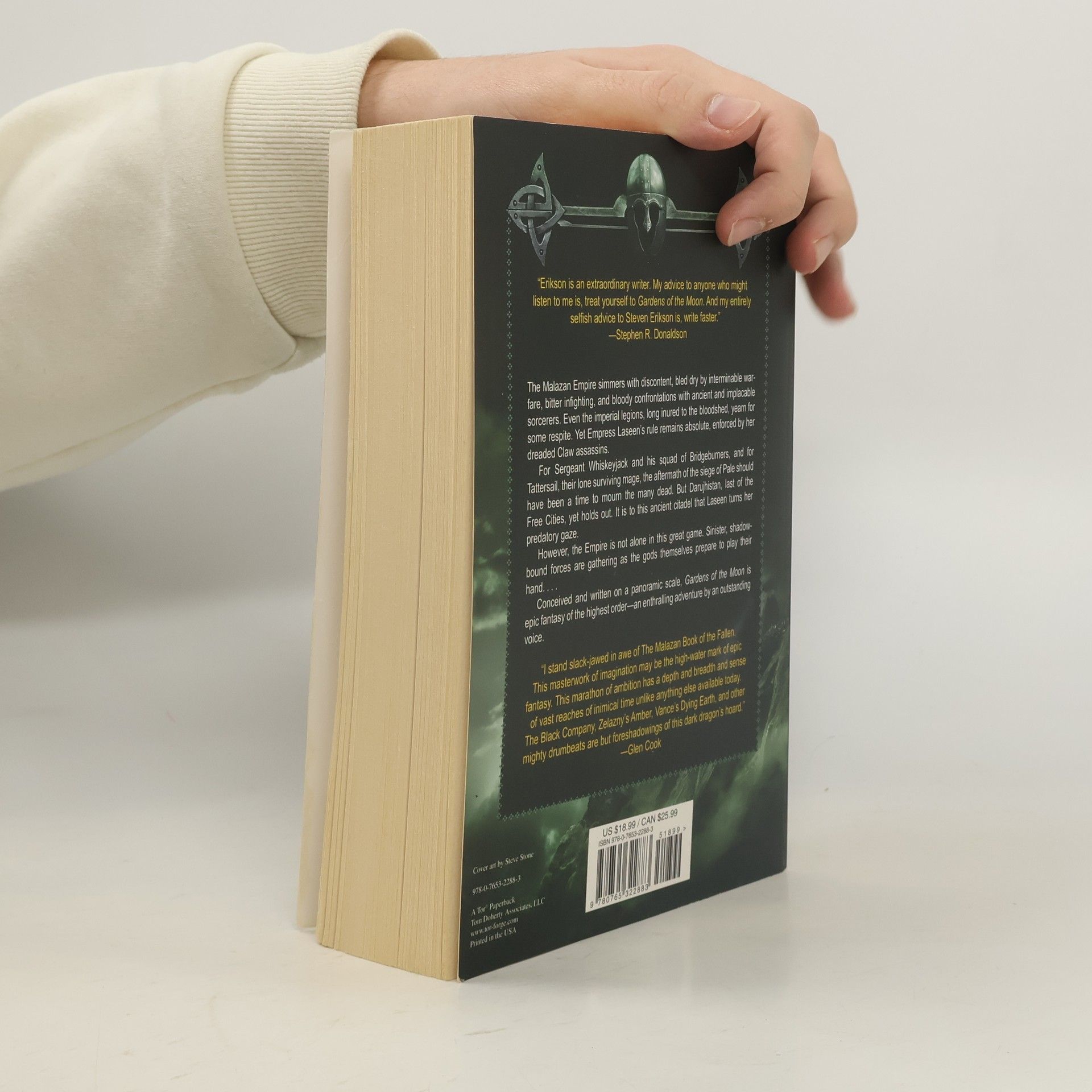 Vast legions of gods, mages, humans, dragons and all manner of creatures play out the fate of the Malazan Empire in this first book in a major epic fantasy series The Malazan Empire simmers with discontent, bled dry by interminable warfare, bitter infighting and bloody confrontations with the formidable Anomander Rake and his Tiste Andii, ancient and implacable sorcerers. Even the imperial legions, long inured to the bloodshed, yearn for some respite. Yet Empress Laseen's rule remains absolute, enforced by her dread Claw assassins. For Sergeant Whiskeyjack and his squad of Bridgeburners, and for Tattersail, surviving cadre mage of the Second Legion, the aftermath of the siege of Pale should have been a time to mourn the many dead. But Darujhistan, last of the Free Cities of Genabackis, yet holds out. It is to this ancient citadel that Laseen turns her predatory gaze. However, it would appear that the Empire is not alone in this great game. Sinister, shadowbound forces are gathering as the gods themselves prepare to play their hand... Conceived and written on a panoramic scale, Gardens of the Moon is epic fantasy of the highest order--an enthralling adventure by an outstanding new voice.