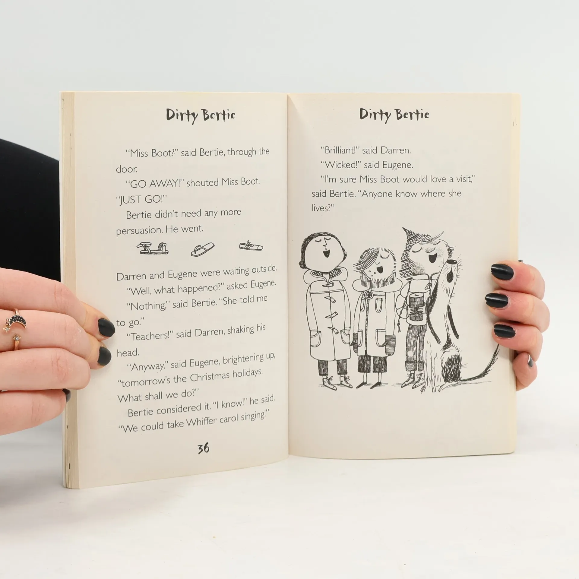 Meet Dirty Bertie - a boy with nose-pickingly disgusting habits! He's the world's grubbiest trouble-magnet and he's full to bursting with madcap plans and crazy ideas. Join Bertie for three comically chaotic Christmas stories as he makes his very own Christmas crackers, performs in the school nativity play and has to dress up as an elf to help out at Santa's Grotto.