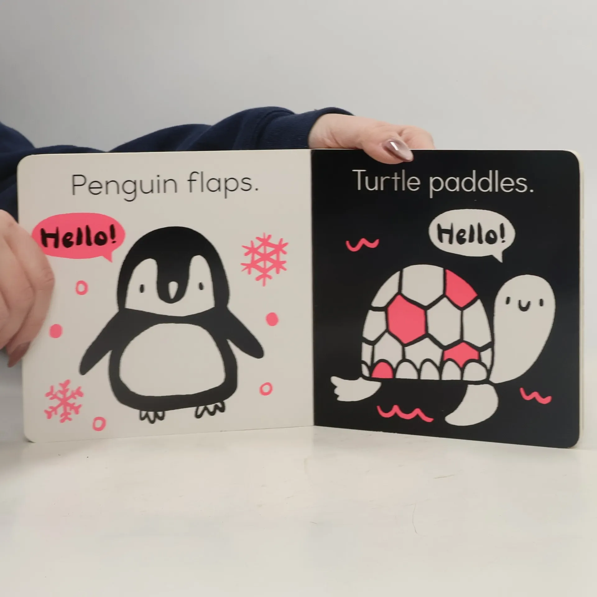 Babies can see black-and-white images from birth, and this captivating series has been specially designed to delight even the youngest readers. Babies will love to experience again and again the appealing, high-contrast black-and-white images in this engaging board book. With a tactile die-cut cover and super-bright fluorescent inks on every page, which feature simple black-and-white illustrations, this series has been specially designed to capture your little one's attention. Babies will meet a host of friendly baby animal characters. Happy Baby introduces adorable baby animals and other happy friends with engaging black-and-white board books! Each page features minimal text and a black-and-white, high-contrast picture with a bright burst of color.