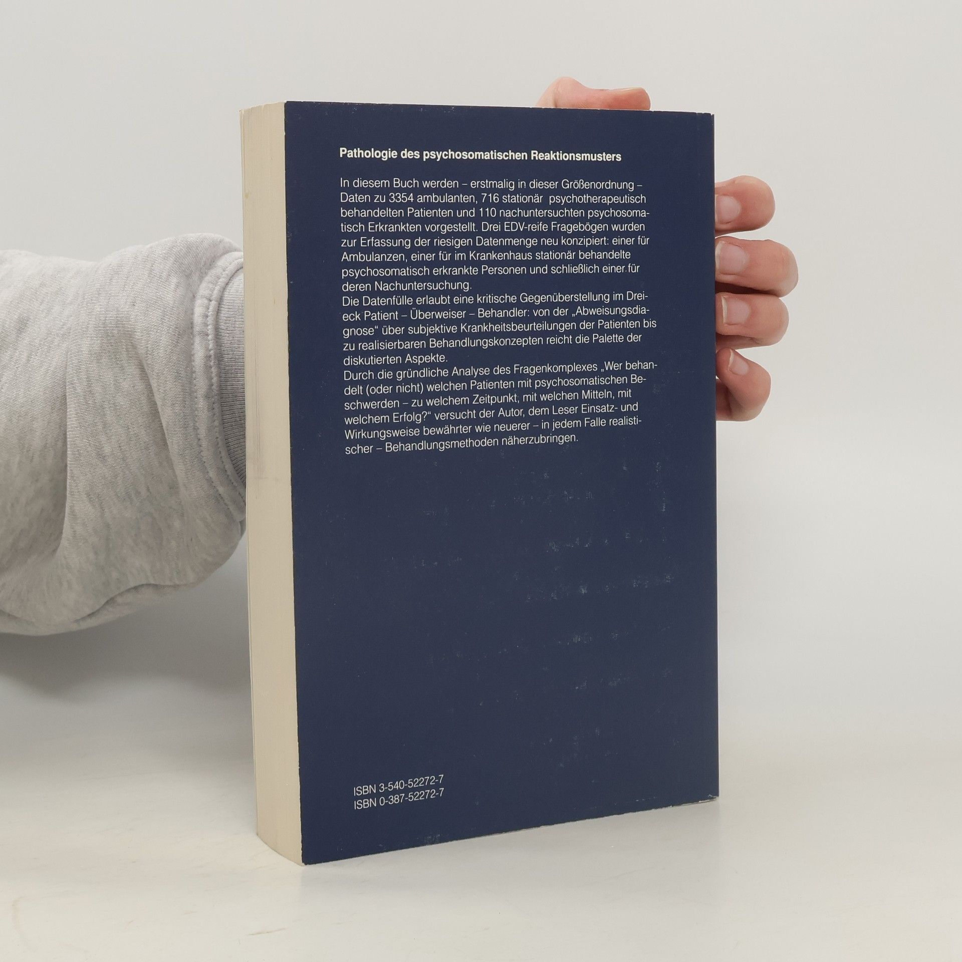 Anhand der außergewöhnlich hohen Zahl von 3354 in neun Jahren untersuchten Patienten (ambulant, stationär und nachuntersucht) zeigt der Autor multifaktorielle Definitionen des pathologischen psychosomatischen Reaktionsmusters und des diagnostisch-therapeutischen Managements in der Psychosomatik. Die Besonderheit des Buches besteht darin, daß es die ambulanten und stationären Versorgungsstrategien kritisch und anhand einer ungewöhnlichen Fülle beweiskräftigen statistischen Materials untersucht. Als Erhebungsstrukturen werden EDV-reife Fragebögen ( interdisziplinärer Kurzfragebogen für Ambulanzen; Nachuntersuchungsfragebogen), mit progredienter Differenziertheit konzipiert, von denen der ausführlichste (unverwendet) modellhaft zur Diskussion steht. Da auch Daten zum konsultierenden und delegierenden Mediziner erhoben werden, ist die Basis gegeben, die zu einer Metaanalyse des "wer behandelt (oder nicht) welchen PPSRM-Patienten zu welchem Zeitpunkt, mit welchen Mitteln und welchem Erfolg" verwendet werden. Ziel dieses Buches ist eine Sensibilisierung des Mediziners und des medizinischen Helfers für Einsatz, Wirkungsweise und Ökonomie diagnostisch-therapeutischer psychosomatischer Strategien.