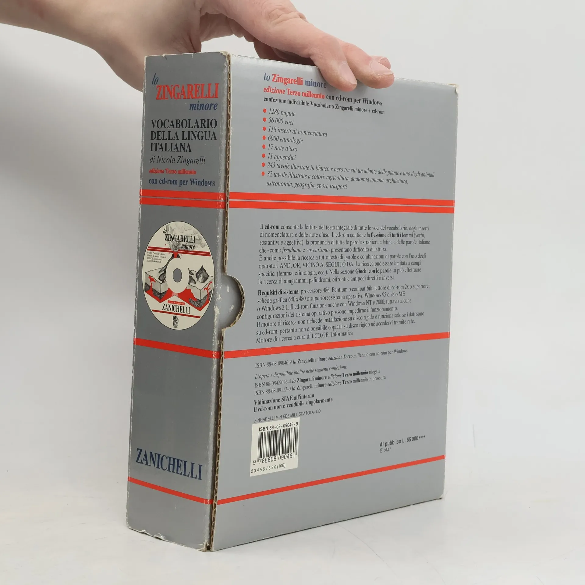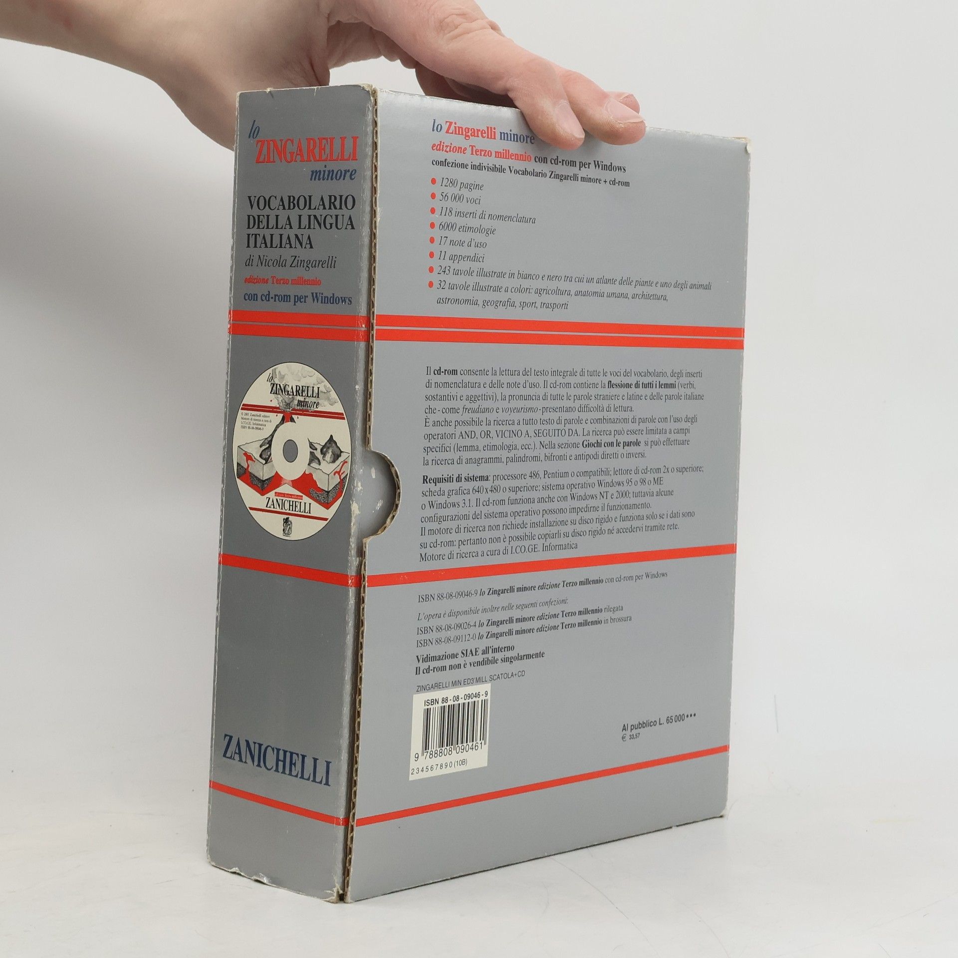 - 1280 pagine; 56000 voci; 118 inserti di nomenclatura; 6000 etimologie; noted'uso (accento, barra, elisione e troncamento, errori comuni, femminile, frazione, maiuscola, numero, parentesi, percentuale, punteggiatura, punto, sillaba, stereotipo, trattino, virgola, virgoletta); appendici (single; locuzioni italiane; locuzione latine; proverbi; nomi di persona; luoghi d'Italia; abitanti d'Italia; unità di misura; gradi militari; prefissi; suffissi). Il dizionario contiene inoltre - 243 tavole illustrate in bianco e nero, tra cui un atlante delle piante e un atlante degli animali; 32 tavole illustrate a colore relative a agricoltura, anatomia umana, architettura, astronomia, geografia, sport, trasporti.