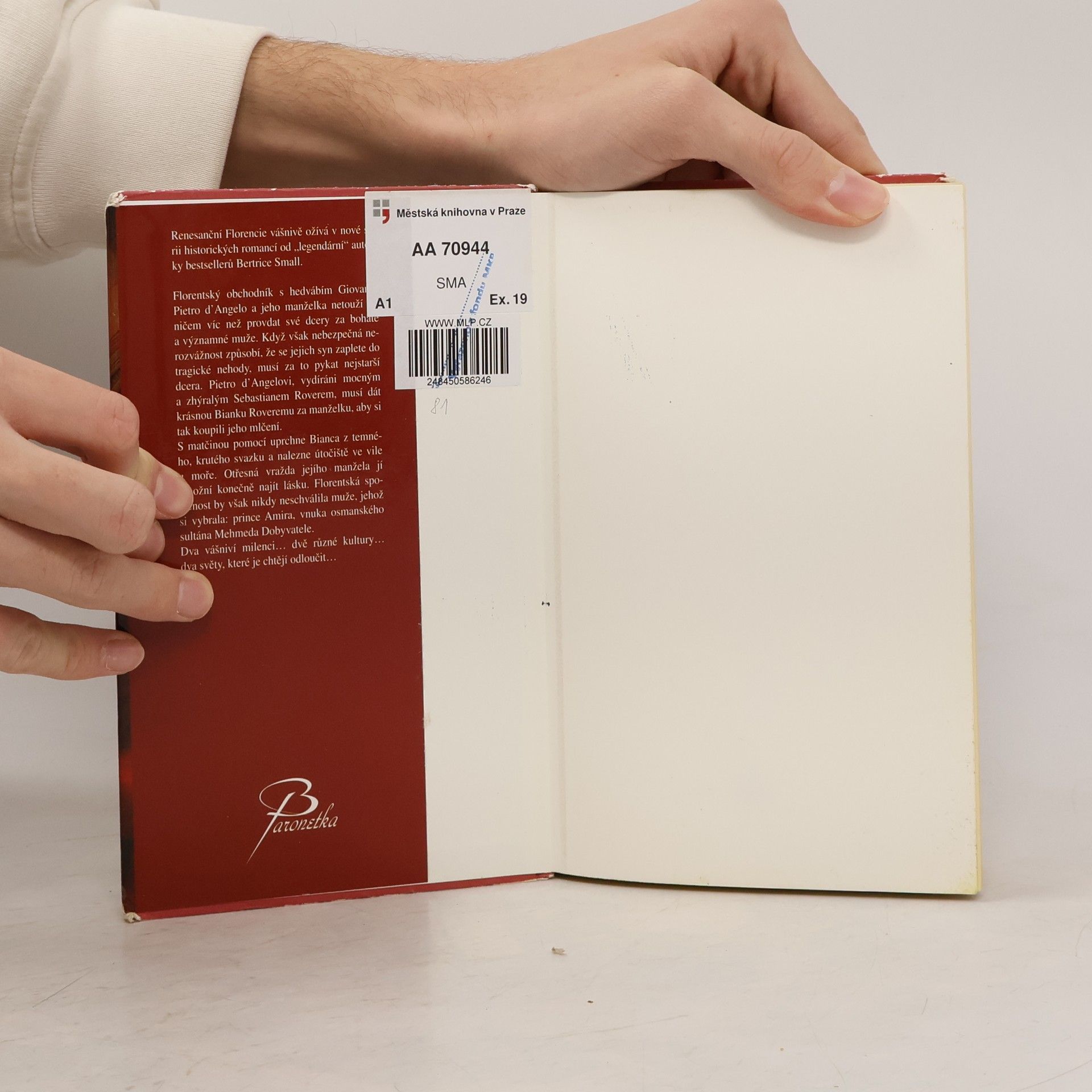 Renesanční Florencie vášnivě ožívá ve svěží a živé historické romantické sérii legendární autorky bestsellerů Bertrice Small. Giovanni Pietro d’Angelo, florentský obchodník s hedvábím, ani jeho manželka netouží po ničem víc, než provdat své dcery za bohaté a významné muže. Když však nebezpečná nerozvážnost přivede jejich syna k tragické nehodě, musí za ni pykat nejstarší dcera. Pietro d’Angelovi, musí dát krásnou Biancu za ženu mocnému a zhýralému Sebastianu Roveremu, který je vydírá, aby si tak koupili jeho mlčení. S matčinou pomocí prchá Bianca ze svého temného, krutého manželského svazku, aby vyhledala přístřeší ve vile u moře. Šokující vražda manžela jí umožní konečně nalézt lásku. Jenže florentská společnost by nikdy neschválila muže, kterého si vybrala: prince Amira, vnuka Memheta Dobyvatele…