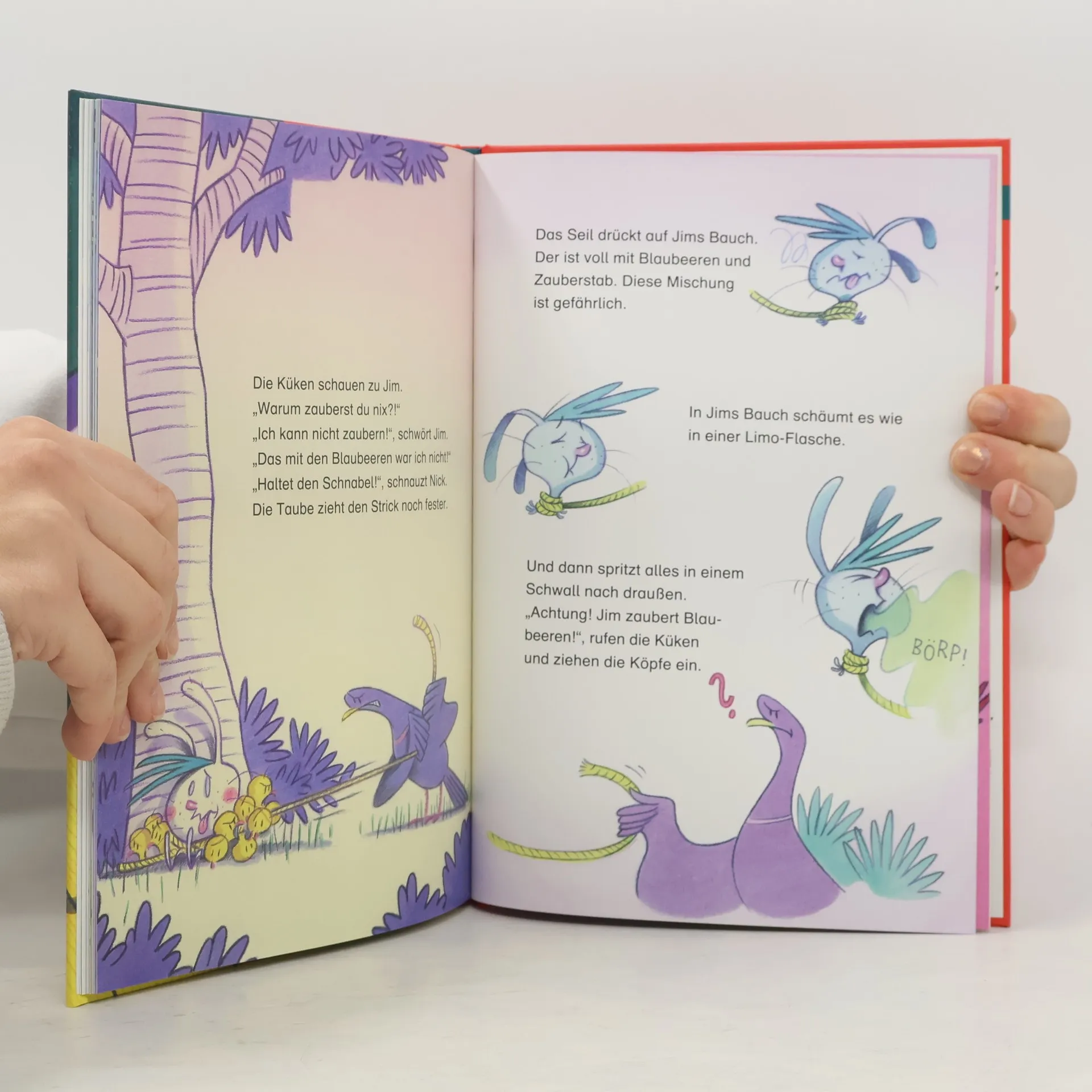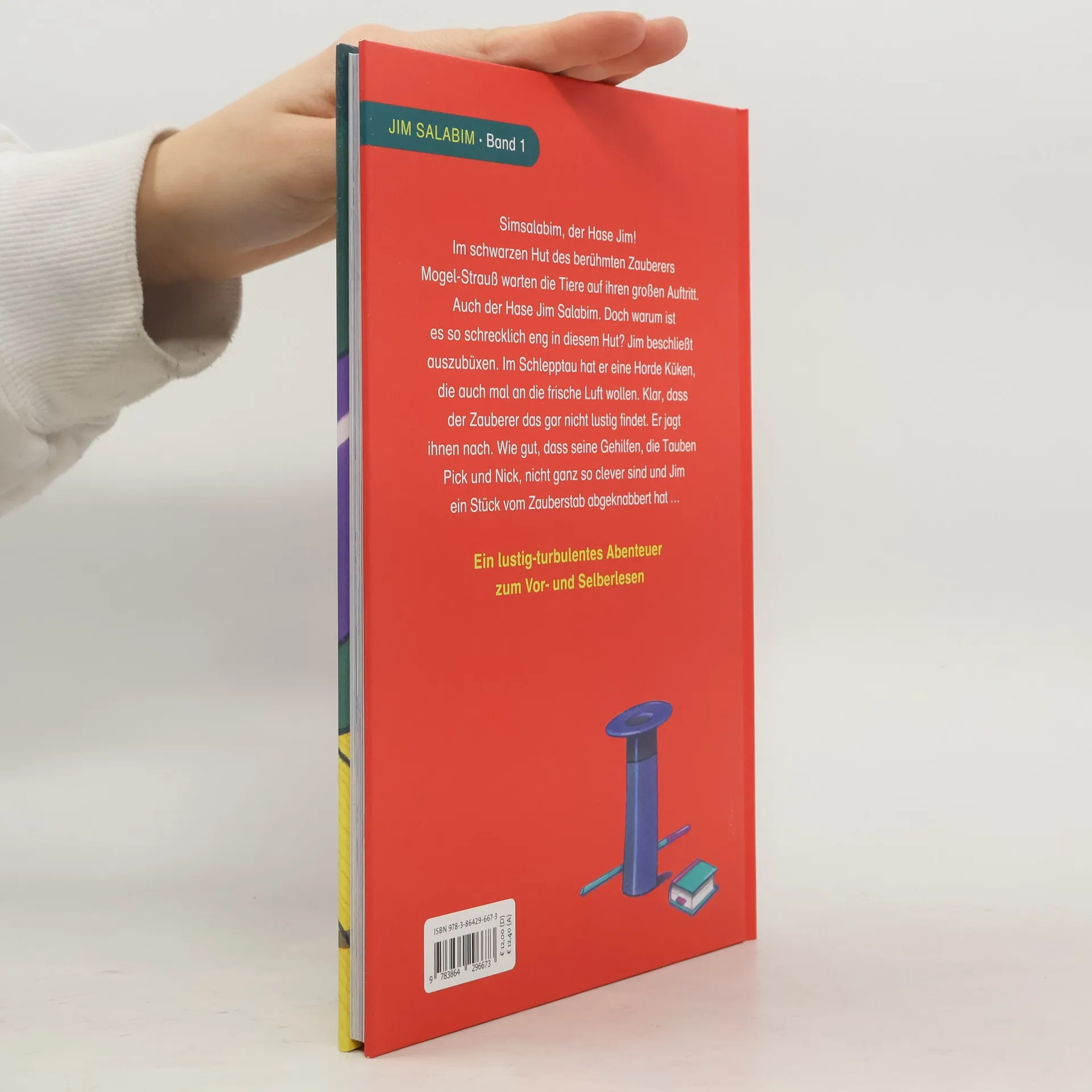 Nach Cowboy Klaus jetzt Hase Jim Salabim Sim Salabim, der Hase Jim! Im schwarzen Hut des berühmten Zauberers Mogel-Strauß warten die Tiere auf ihren großen Auftritt. Auch der Hase Jim Salabim. Doch warum ist es so schrecklich eng in diesem Hut? Jim beschließt auszubüxen. Im Schlepptau hat er eine Horde Küken, die auch mal an die frische Luft wollen. Klar, dass der Zauberer das gar nicht lustig findet. Er jagt ihnen nach. Wie gut, dass seine Gehilfen, die Tauben Pick und Nick, nicht ganz so clever sind und Jim ein Stück vom Zauberstab abgeknabbert hat … Ein lustig-turbulentes Abenteuer zum Vor- und Selberlesen Ausstattung: durchgehend 4-farbig illustriert