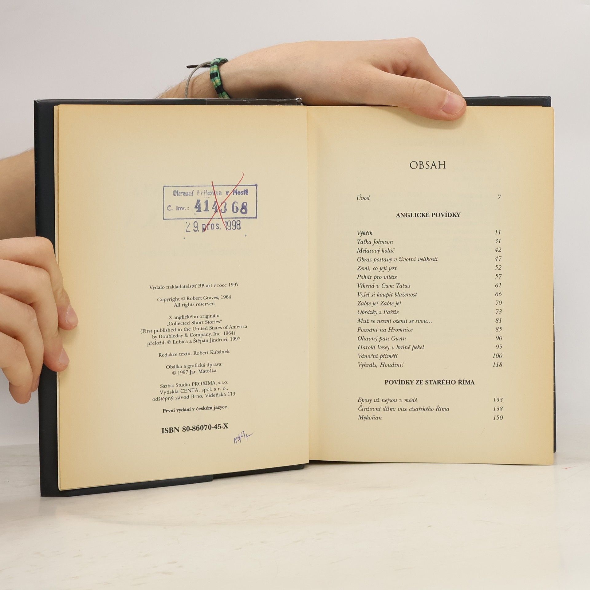 Jde o knihu povídek rozdělenou do tří tématických okruhů: Anglické povídky, Povídky ze starého Říma, Povídky z Mallorky.